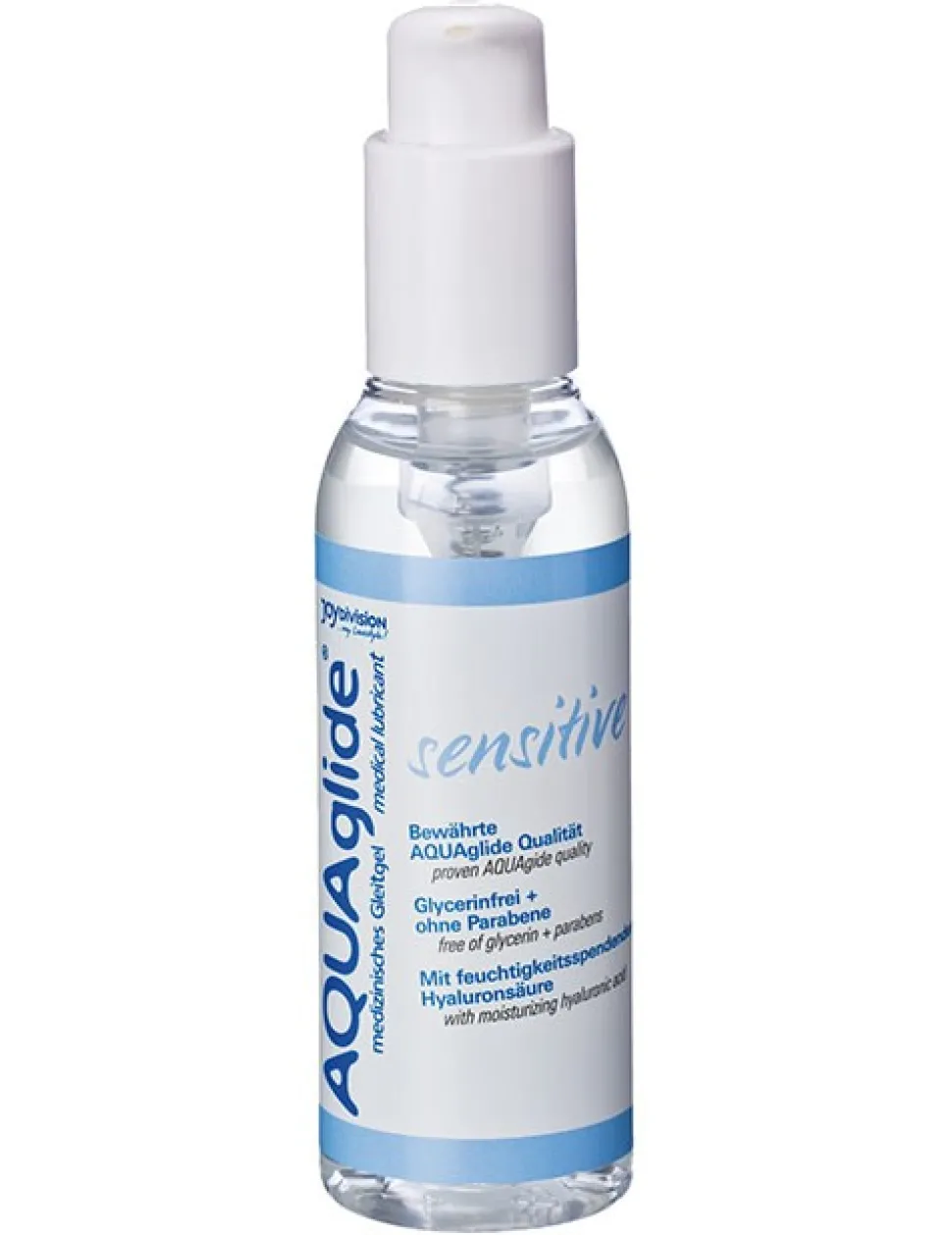 AQUAglide sensitive das kristallklare, feuchtigkeitsspendende Gleitgel verbessert spürbar die Gleitfähigkeit beim Geschlechtsverkehr. AQUAglide sensitive ist speziell auf die Bedürfnisse der empfindlichen Vaginal-Schleimhaut abgestimmt und ist sehr gut für die Verwendung mit Latexkondomen und Lovetoys (auch aus Silikon) geeignet. Ohne Glycerin und Parabene. Mit Pumpspender. Auf Wasserbasis.