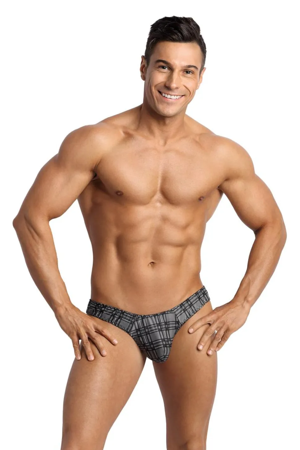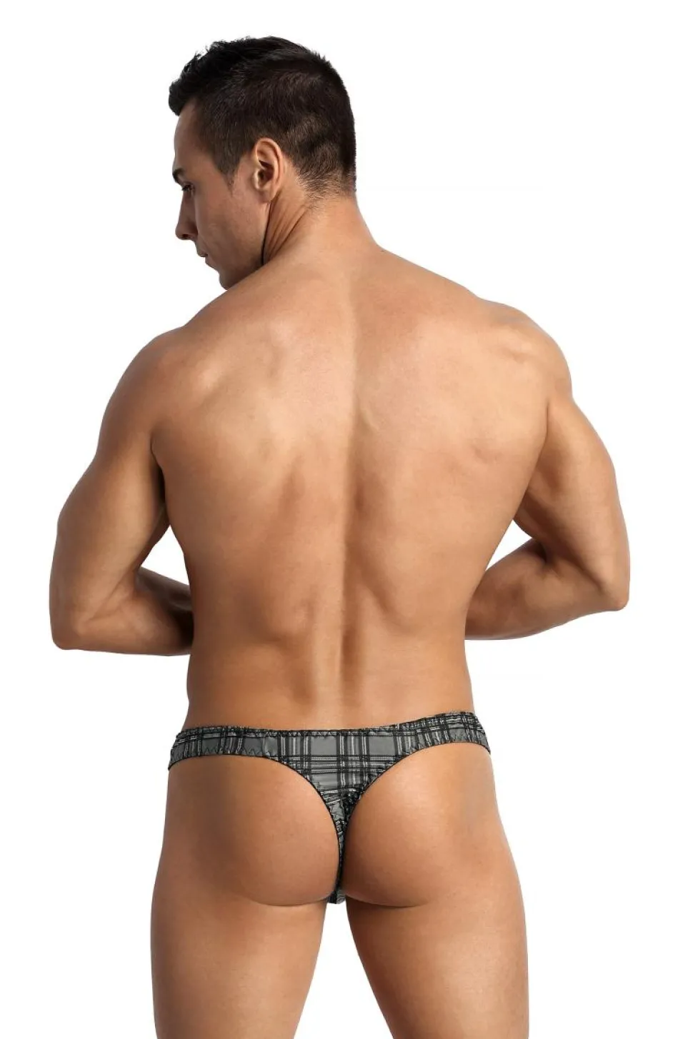 Schöner Herren String, gefertigt aus glattem, halbtransparentem Stoff, mit Karo Muster. Perfekte Passform und hoher Tragekomfort.