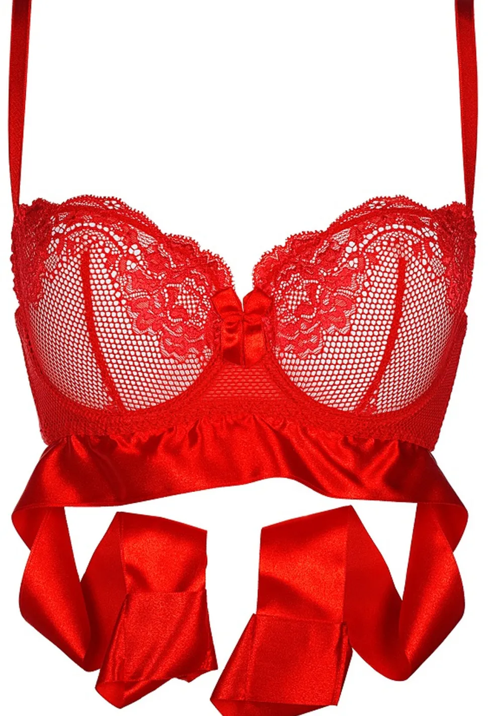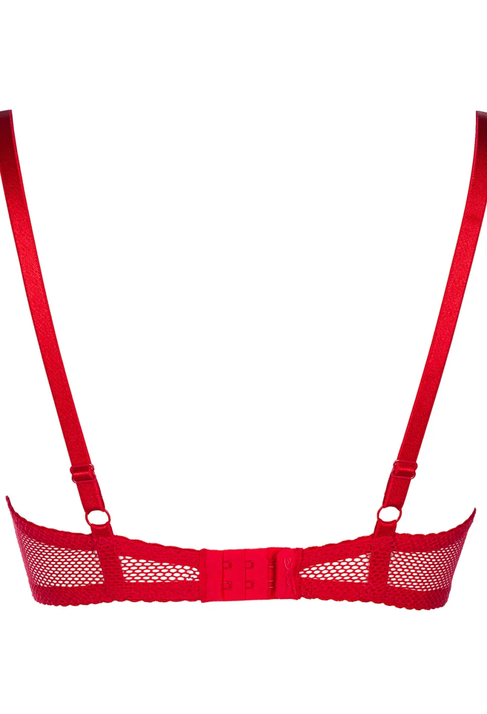Der etwas andere Bügel-BH! Der rote BH von Axami besticht durch viele, erotische Details. Er ist aus Netzmaterial und Spitze gefertigt. Unterhalb des BH´s wurde satinähnliches Material vernäht, welche als Armstulpen fungieren. Diese einzigartige Kombination verleiht dem BH das gewisse Etwas.