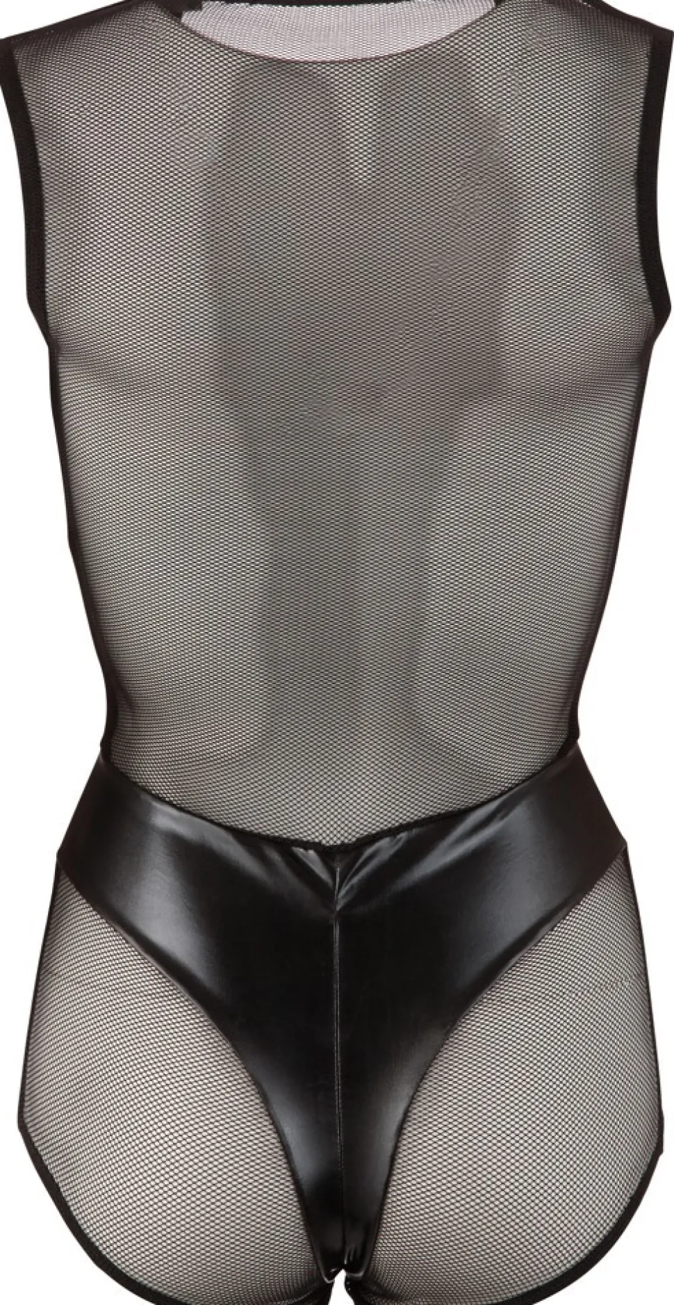 Dieser figurbetonte Body wird Dich zum Hingucker jeder Party werden lassen. Er zeigt elegant viel Haut, denn neben dem Wetlookstoff, besticht der Body durch einen transparenten Stoff. Zudem gibt der tiefe V-Ausschnitt tiefe Einblicke.