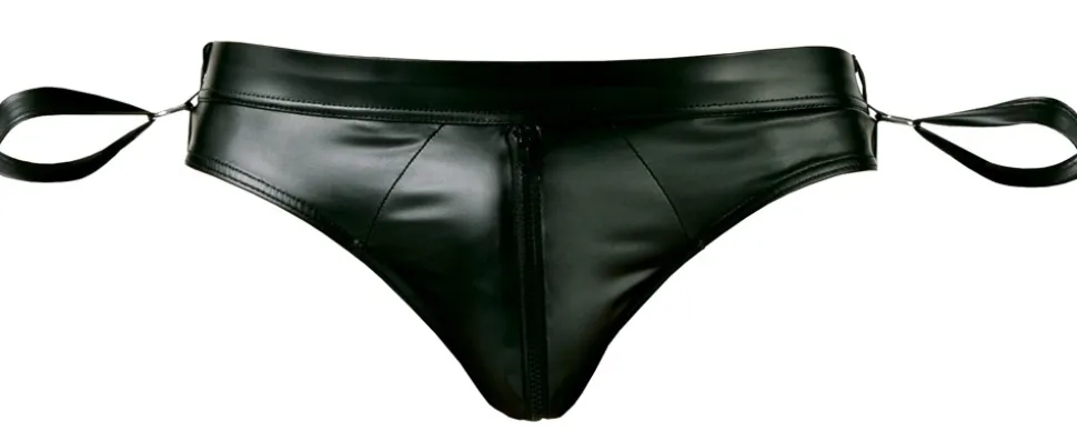 Aufregend po-freier Jockslip von Svenjoyment Bondage im trendigen Mattlook, der seine besten Teile aufregend betont. Jeweils seitlich mit einem Ring für die beiden beiliegenden Handfesselriemen mit verstellbaren Klettverschlüssen.