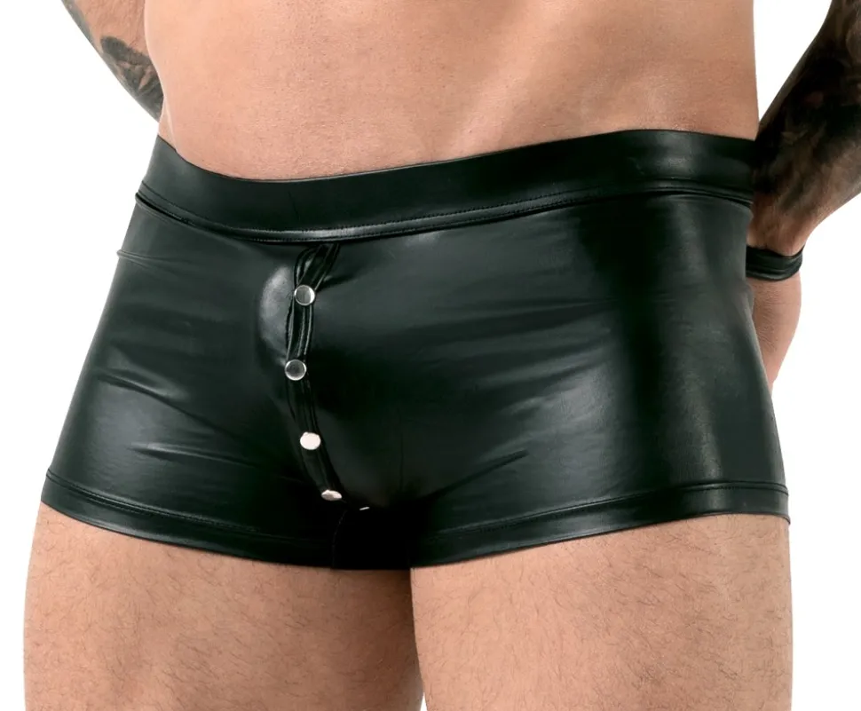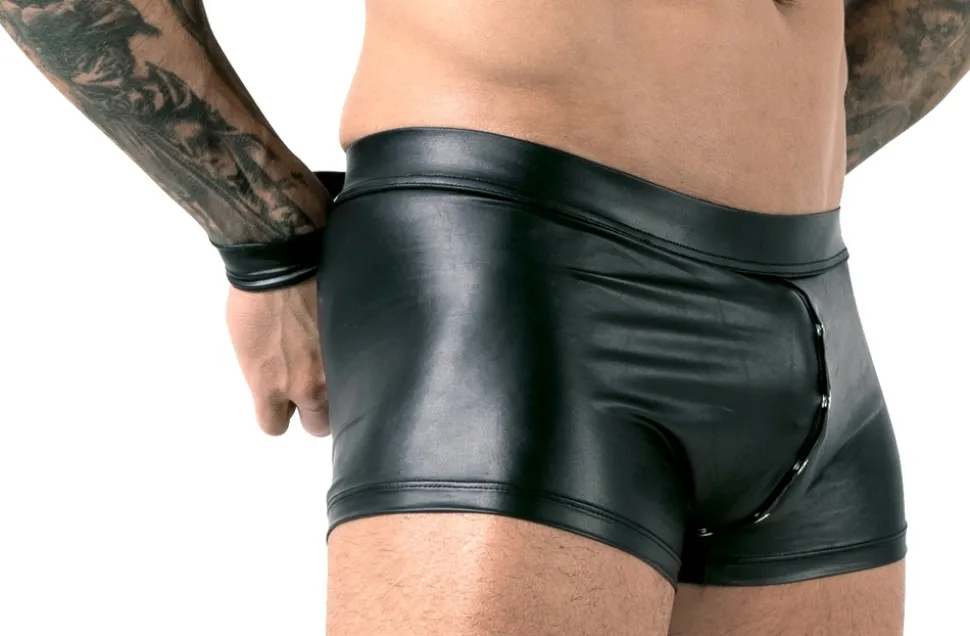 Schwarze Pants von Svenjoyment Bondage im edlen Mattlook. Elastisch und anschmiegsam für hohen Tragekomfort. Mit Druckknopfverschluss von vorne, durch den Schritt bis über den Po. Hinten können am Bund die beiden beiliegenden Fesselriemen befestigt werden, um die Hände auf dem Rücken zu fixieren. Die Fesselriemen im Mattlook haben jeweils einen verstellbaren Klettverschluss.