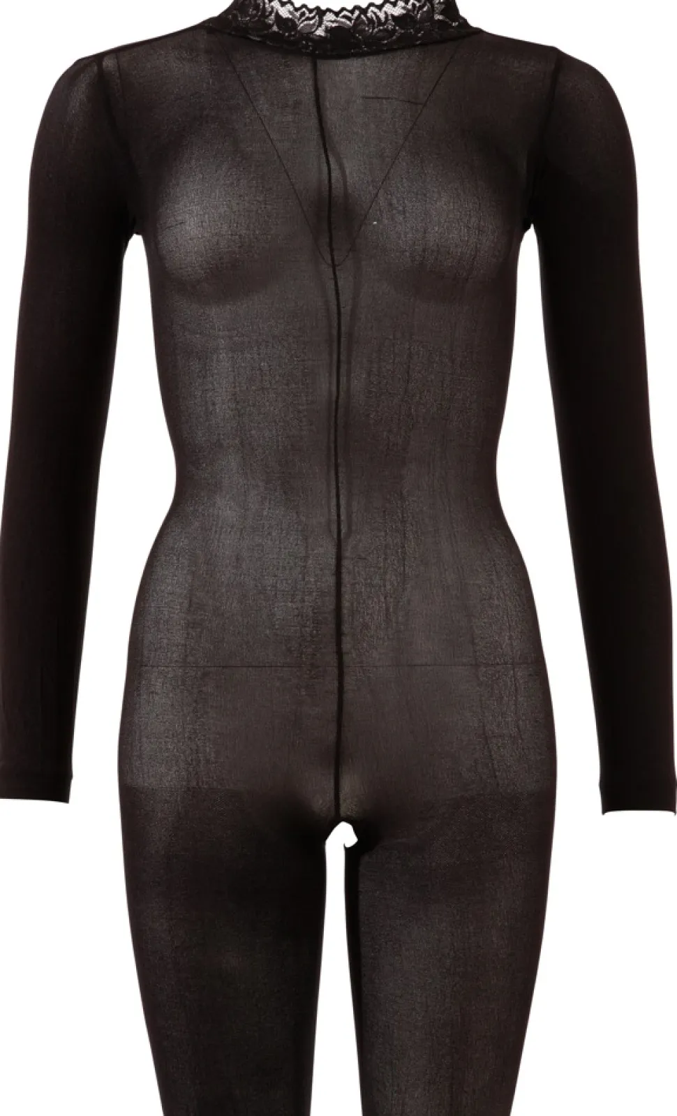 NO:XQSE schwarzer Langarm-Catsuit im Schritt geöffnet.