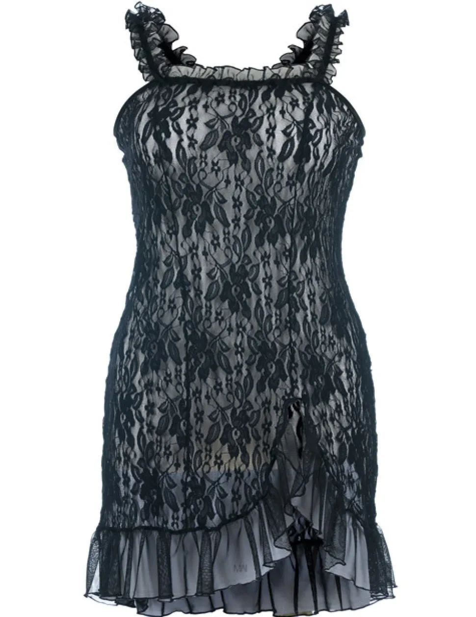 – Schwarze Chemise aus dehnbarer Spitze und Tüll am unterem Saum