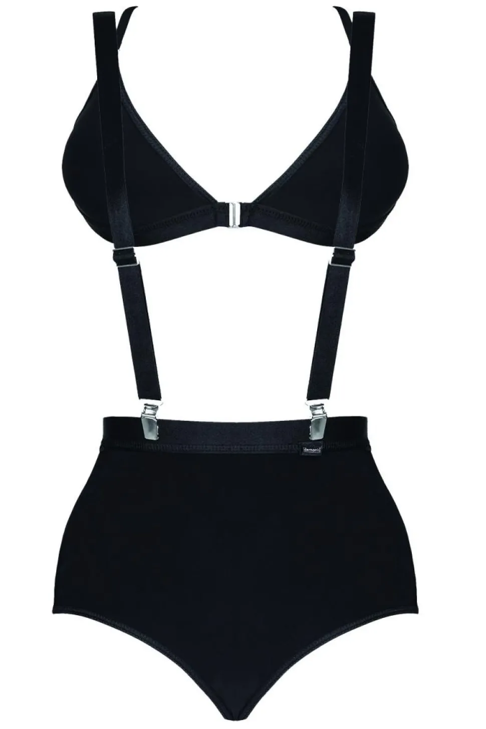 dieses sexy Clubwear besteht aus einem BH und einer ouvert Panty. Gefertigt wurden diese heißen Teile aus feinem, dehnbahrem Material. Die Hosenträger, aus elastischen Gummibändern, sind verstellbar und haben Metallclips. MUST HAVE!