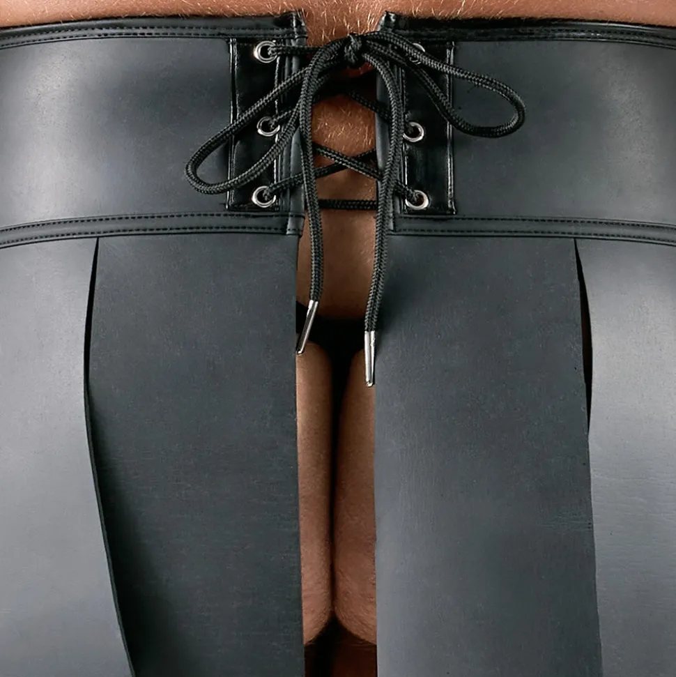 Brustharness, Gladiator-Rock und 2 Handfesseln im Set von Svenjoyment Bondage. Schwarz-mattes, markantes Material – leicht elastisch für angenehmen Tragekomfort. Harness mit praktischen Druckknöpfen schnell an- und abgelegt. Kurzer Rock mit stilechter Bund-Schnürung hinten. Vorne und seitlich am Bund aufgesetzte Riemen mit Nieten und Ringen. Daran lassen sich die beiden beiliegenden Handfesseln schnell mit ihren Doppel-Karabinern befestigen. Die soften Fesseln sind für lustvolle Fixierungen dank Klettverschlüssen schnell angelegt und angepasst.