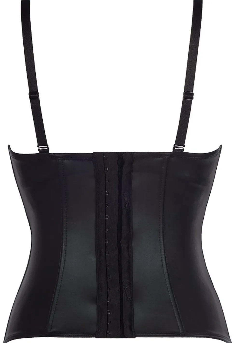 In dieser Corsage wirst Du Dich absolut sexy fühlen! Die verführerische, schwarze Corsage aus latexähnlichem Material schmeichelt deiner Figur perfekt. Das weiche Innenmaterial liegt angenehm auf der Haut und gewährleisten einen hohen Tragekomfort. Die eingearbeiteten Stäbchen und die mit Bügeln unterlegenen Cups sorgen für den perfekten Halt.