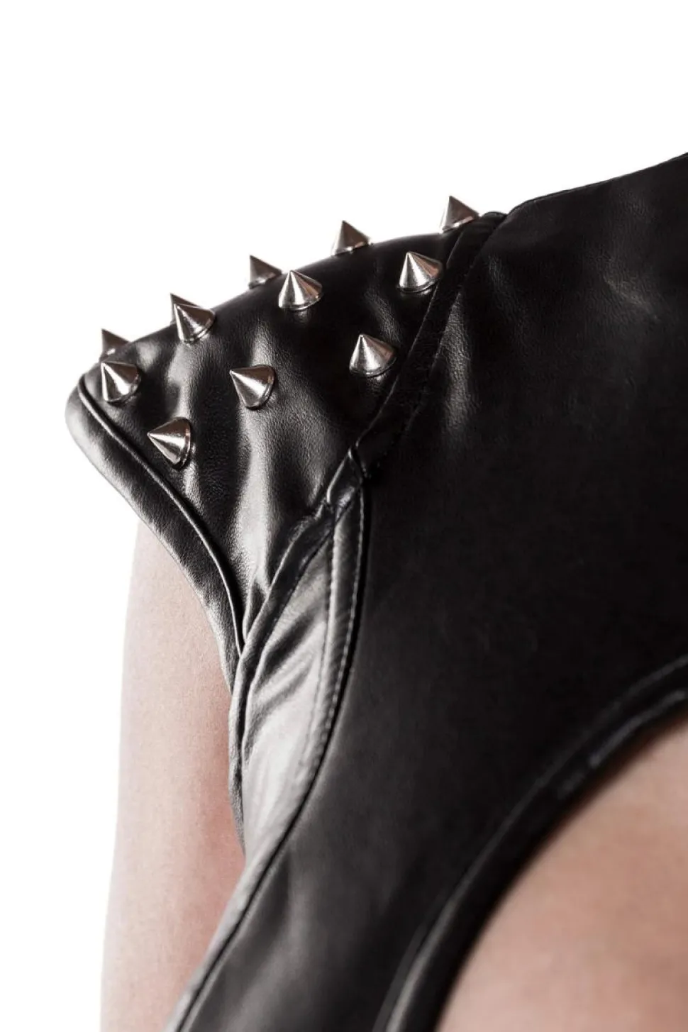 Elegantes Corsagen-Kleid mit Stehkragen und Ziernieten. Gefertigt wurde das gute Stück aus Kunbstleder. Dem Oberteil wurden Stäbchen hinzugefügt, für einen besseren Halt. Der Stehkragen und die Nieten sind ein Blickfänger. MUST HAVE!
