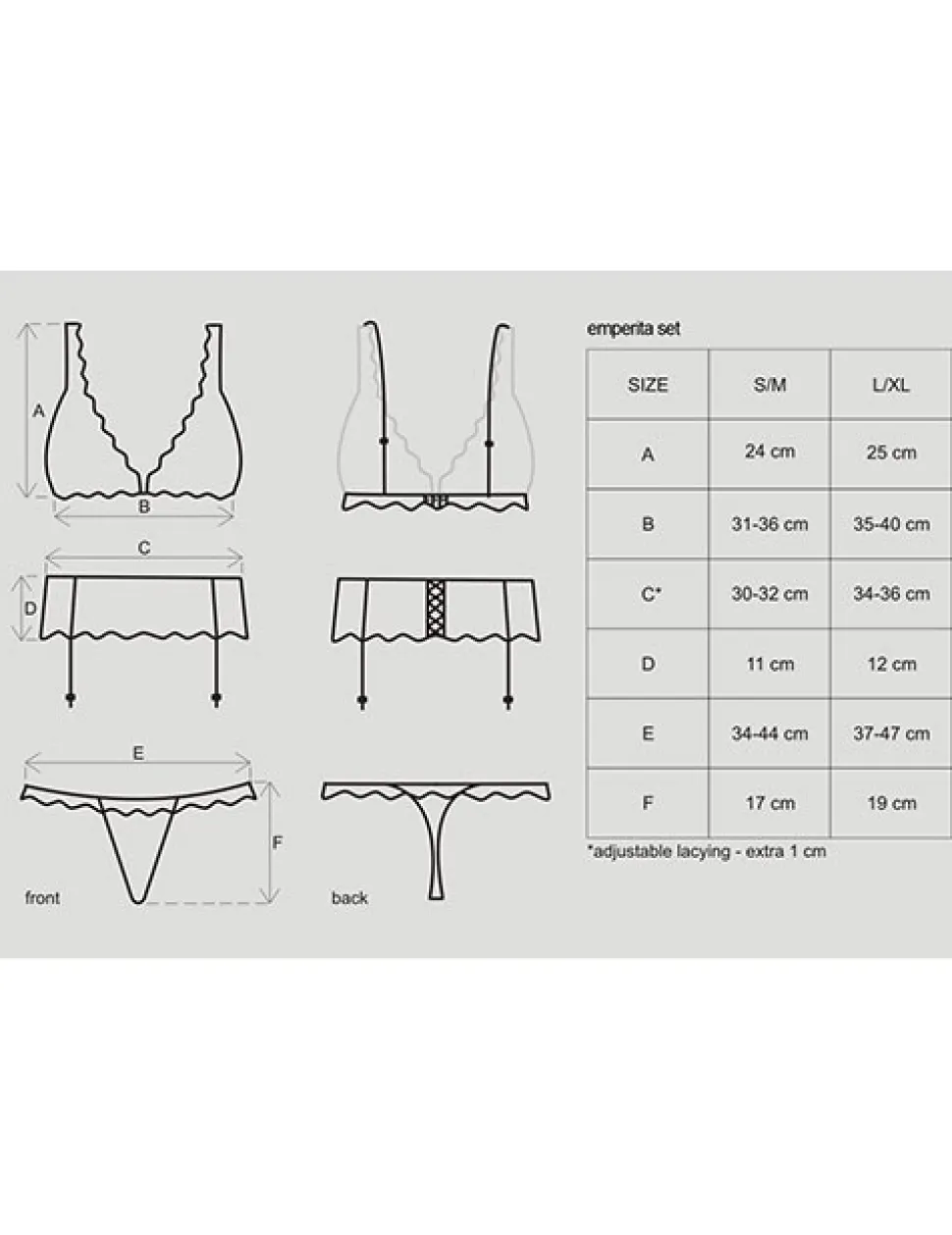 - Dieses sexy Ensemble von Obsessive umfasst einen BH, Strapse und einen Tanga