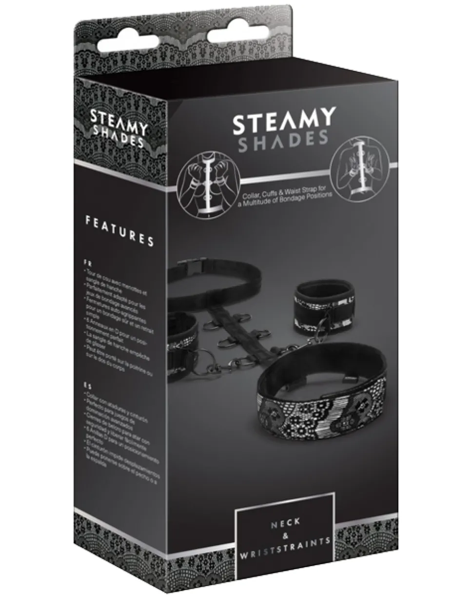 Steamy Shades – Fesselsystem – Halsband mit Manschetten und Hüftgurt für maximale Fesselung