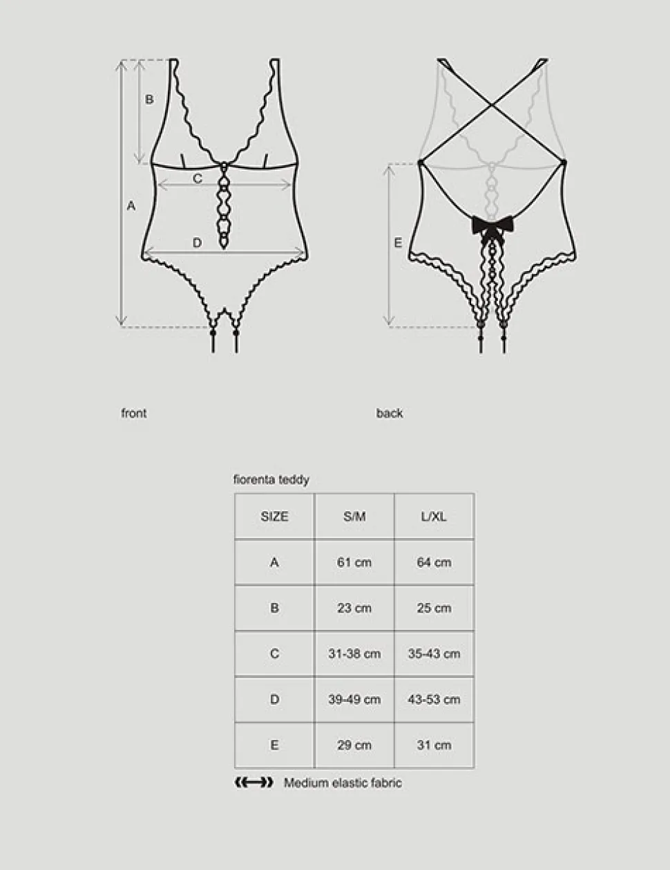 Dieser schwarze und elegante Body von Obsessive ist mit seinem Blumenmotiv ein echter Hingucker. Durch das elastische und anschmiegsame Material hat er eine perfekte Passform. Der offene Schritt und die Schleife über dem Po machen das gewisse Extra.