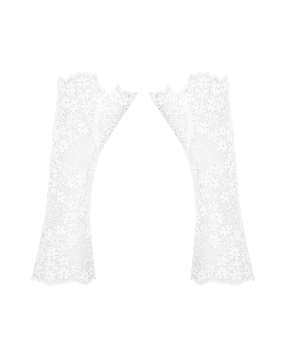 Elegante Armstulpen gefertigt aus floraler Spitze in weiß.
