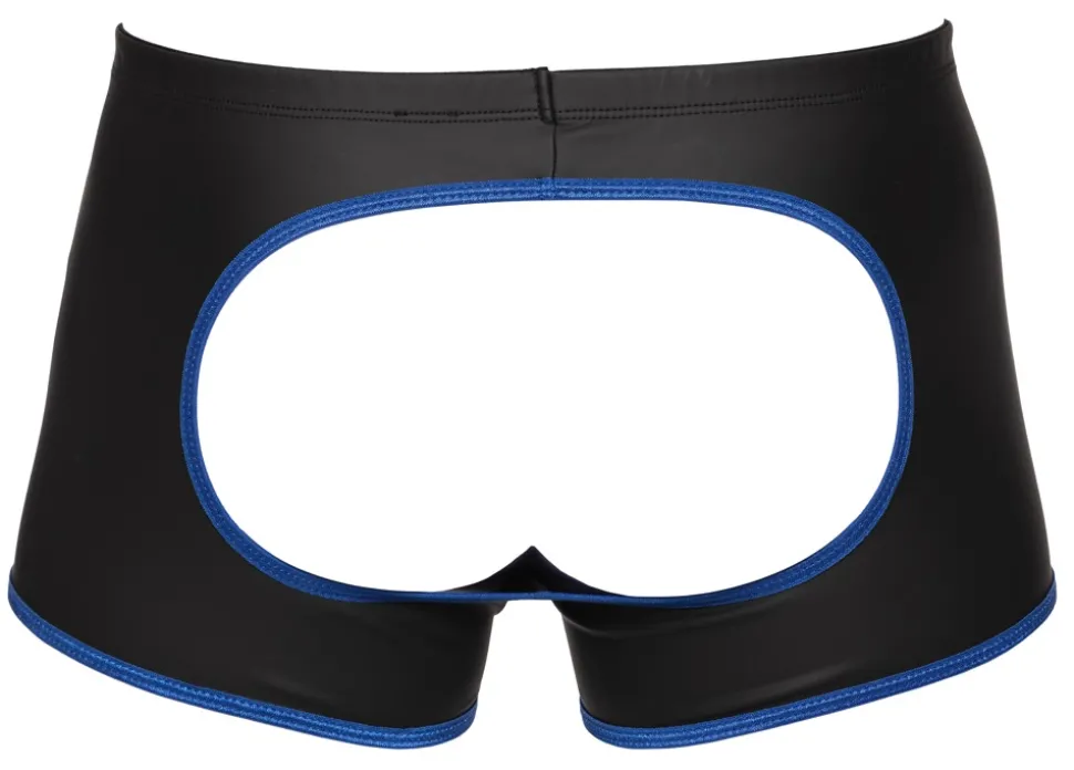 Pofreie Pants von Svenjoyment mit Showmaster-Öffnungen für Penis und Hoden. Im trendigen schwarzen Mattlook mit kontrastierenden, sorgfältig eingefassten Cut-outs und Beinabschlüssen in Royalblau. Die elastische Qualität schmiegt sich passformsicher hautnah an und trägt sich höchst komfortabel. Die provokanten Öffnungen sind nicht nur dekorativ, sie sorgen auch für besonders aufregende Tragegefühle.