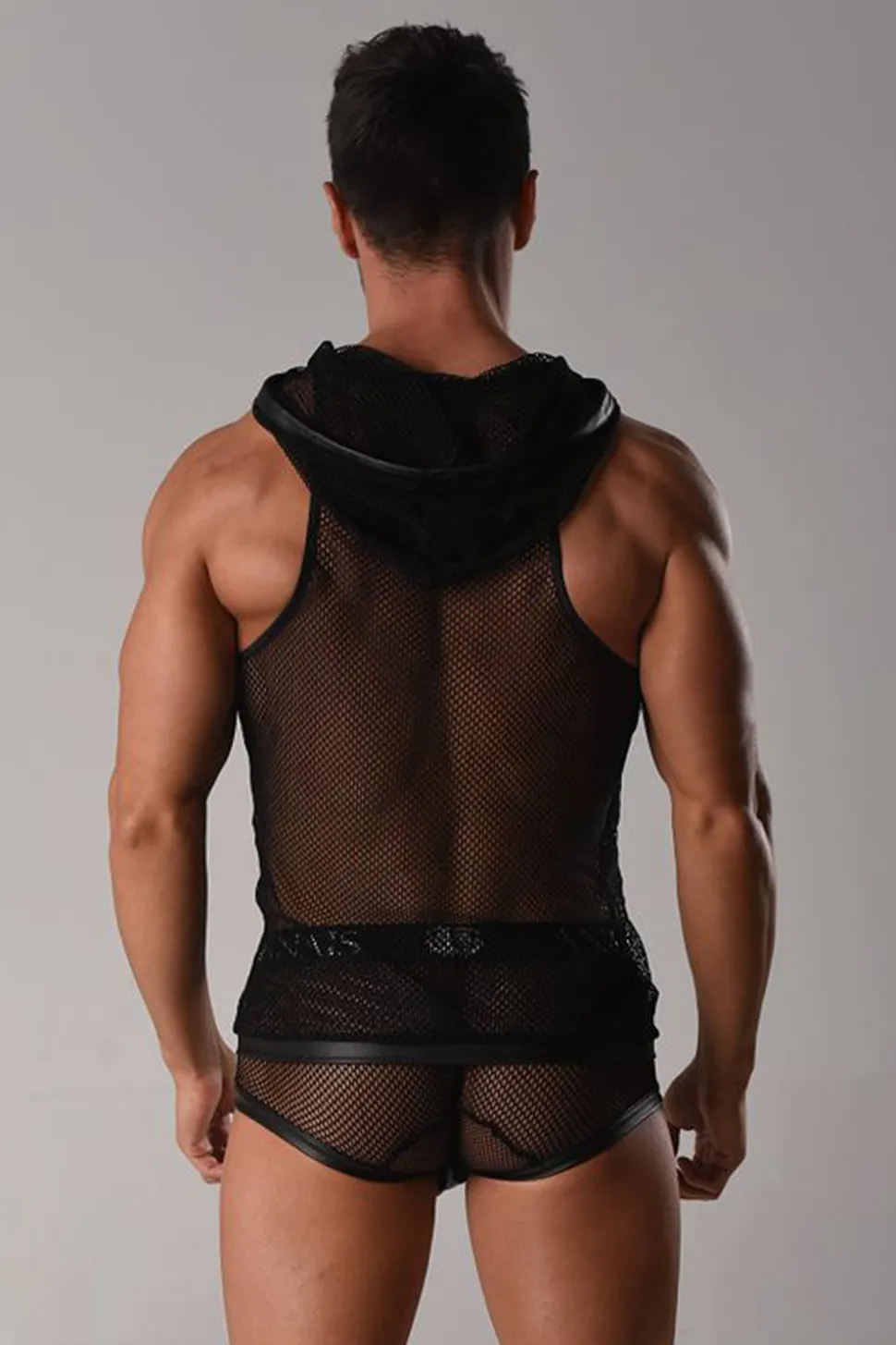 Herren Hoodie, gefertigt aus dehnbaren Netz und matten Wetlookmaterial, am unteren Saum und der Kapuze (ohne Boxer).