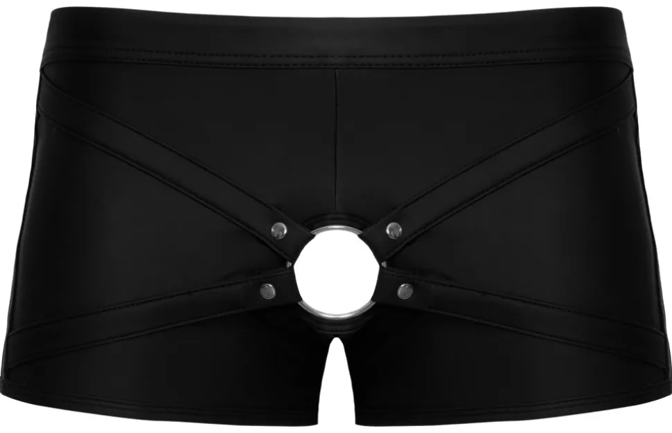 Enge betonende Pants von Svenjoyment im schwarzen Mattlook mit roten Webgummi-Seitenstreifen. Rundum weich und elastisch für maximalen Tragekomfort. Mit Showmaster-Öffnung für den Penis und Swellfunktion. Metall-Penisring (Innen-Ø 5 cm) an Stretchbändern mit Druckknöpfen austauschbar. In den Ring kann für Strap-on-Spiele auch jeder leichte Dildo/Vibrator (nicht beiliegend) mit Saugfuß eingesetzt werden.