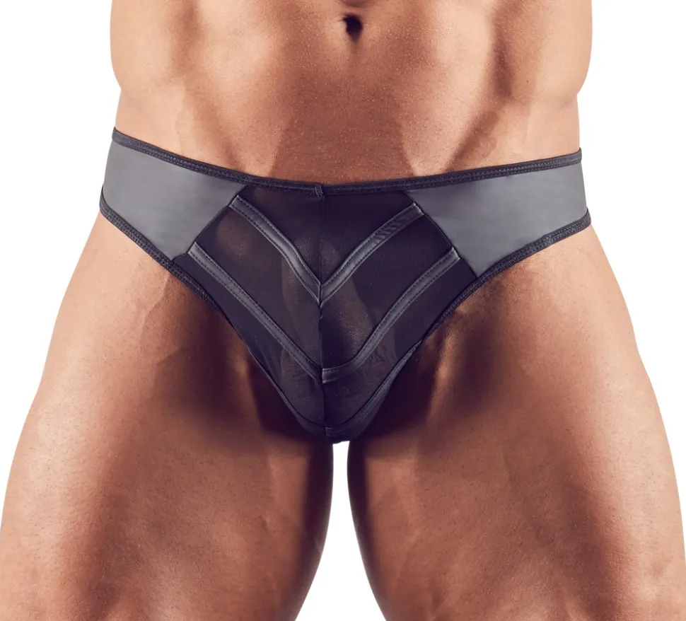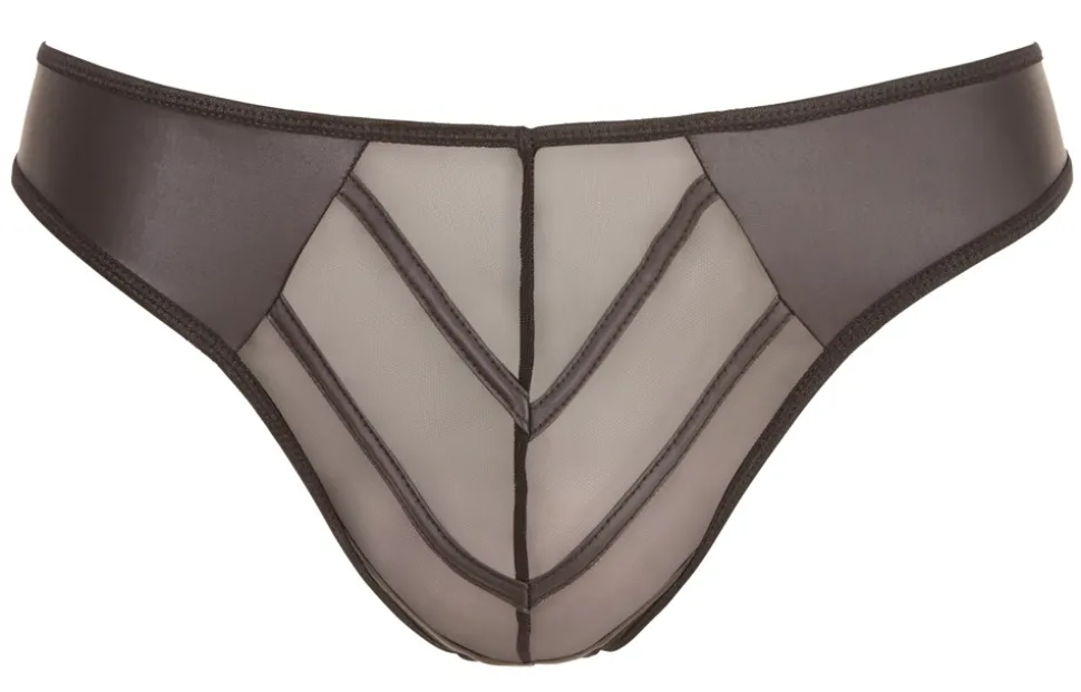 Dieser schwarze Riostring überzeugt im aufregenden Mattglanz-Powernet-Mix! Die Säume schmal eingefasst, punktet der transparente Einsatz stilsicher mit spitz zulaufenden Streifen. Dank des elastischen Materials besitzt das heiße Höschen einen hohen Tragekomfort und setzt vor allem eine knackige Kehrseite gekonnt in Szene!