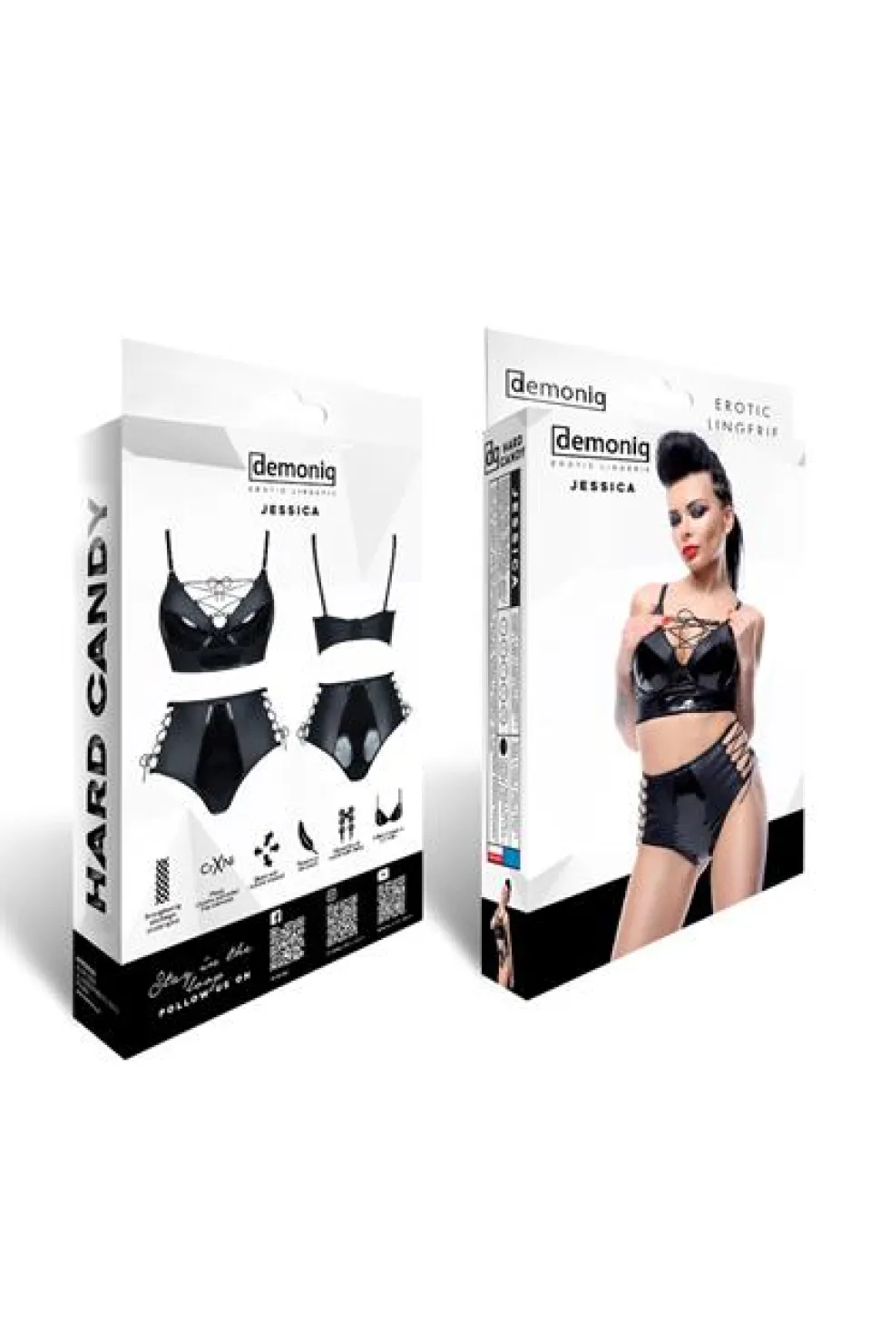- aus elastischem, mattem Wetlook-Material und glänzendem PVC-Material