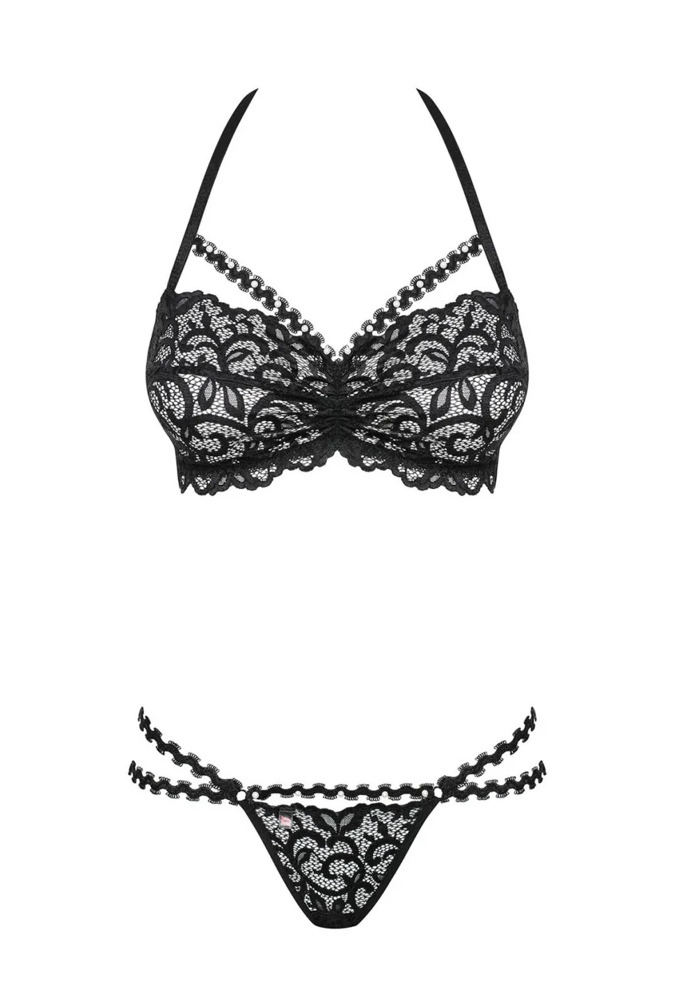 Dieses erotisches 2-teiliges Set gefertigt aus zarter Spitze wird Deinen Liebsten so richtig einheizen. Es besticht mit seinem schlichten Design und dekorativen Elementen, wie kleine glänzende Steinchen und zusätzliche, elastische Riemchen.