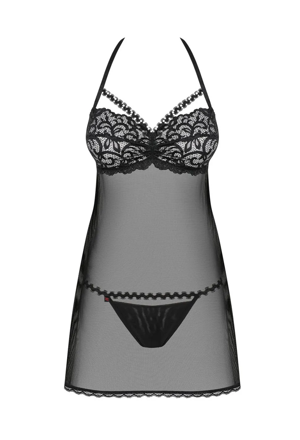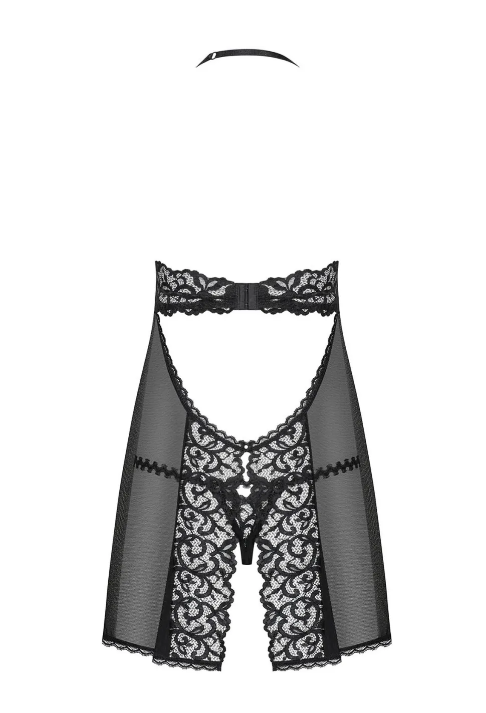 Verführerisches Babydoll gefertigt aus zarten Materialien, die Deinen Body voll und ganz zur Geltung bringen werden. Das süße Top umspielt Deinen Körper mit zart gerafftem Meshstoff, der locker nach unten über Deine Kurven fällt. Dein sexy Dekolleté wird durch den tiefen V-Ausschnitt und filigrane Spitzendetails sinnlich umschmeichelt und perfekt in Szene gesetzt. Der Rücken ist fast komplett freiliegend. Im Set ist ebenfalls ein zum Babydoll passender String enthalten.