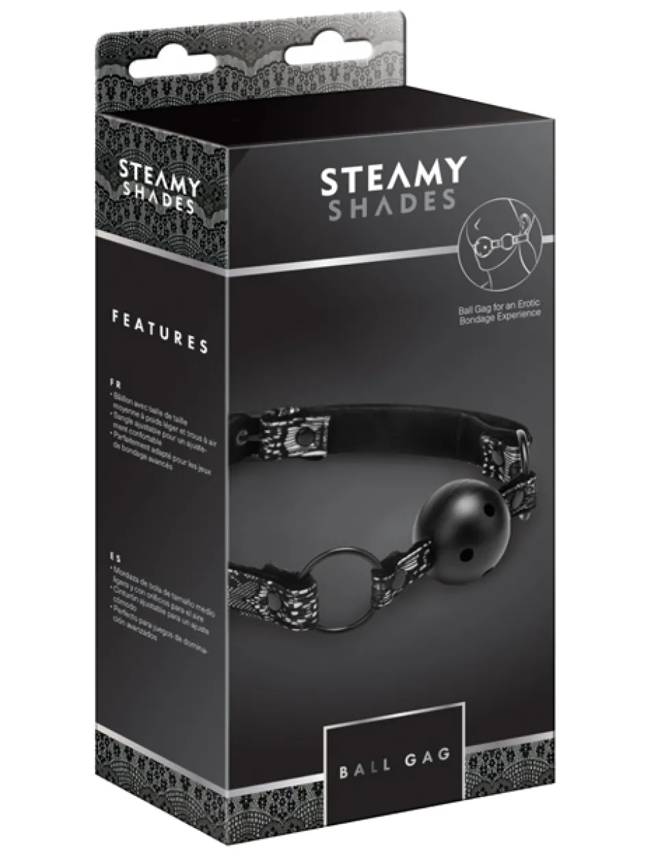 Steamy Shades – Knebelball „Gag“ mit Atmungslöchern und verstellbarem Geschirr