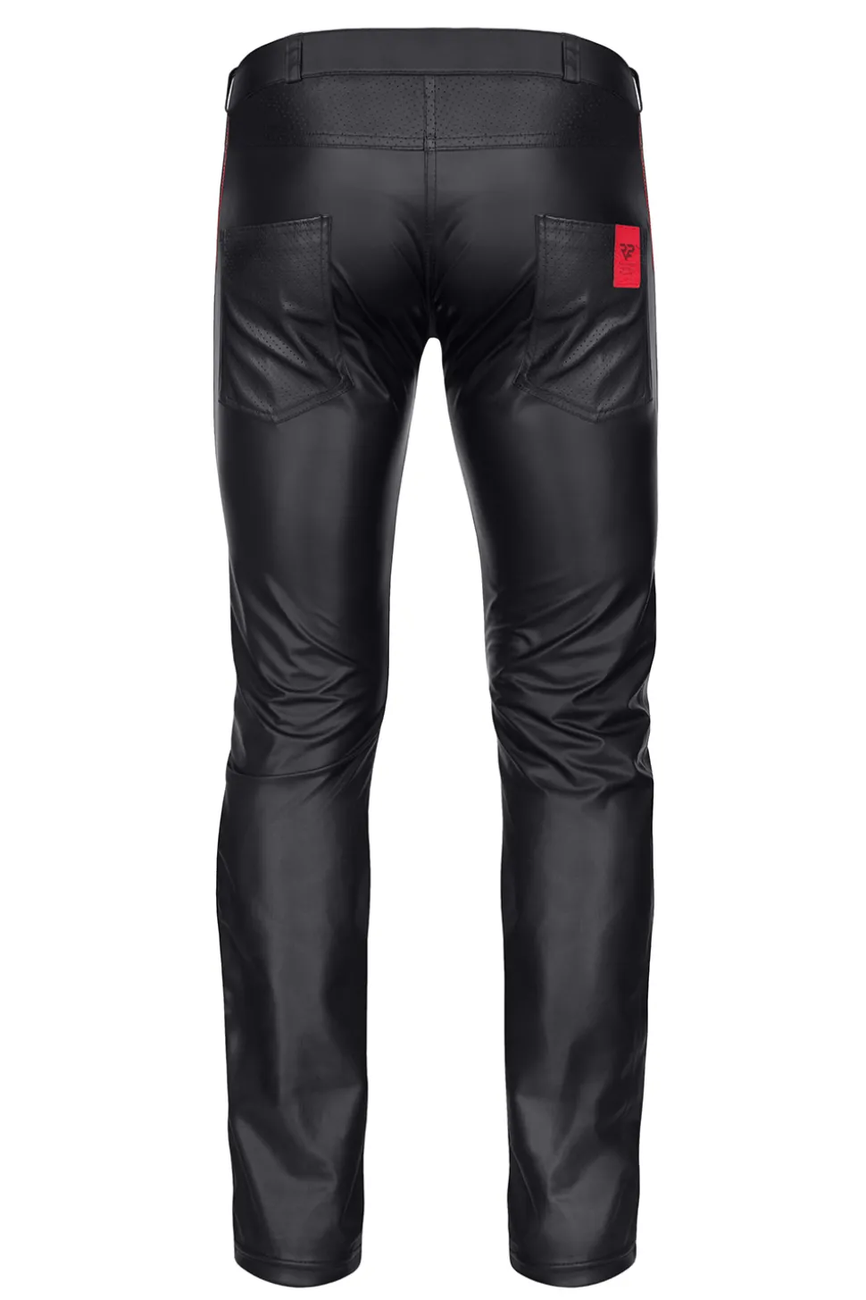 Lange Hose im Slim Fit Schnitt, Mit dekorativen perforierten Wetlook Einsätzen. Die Taschen sind funktional und die tiefe Taille rundet dieses gute Stück ab.