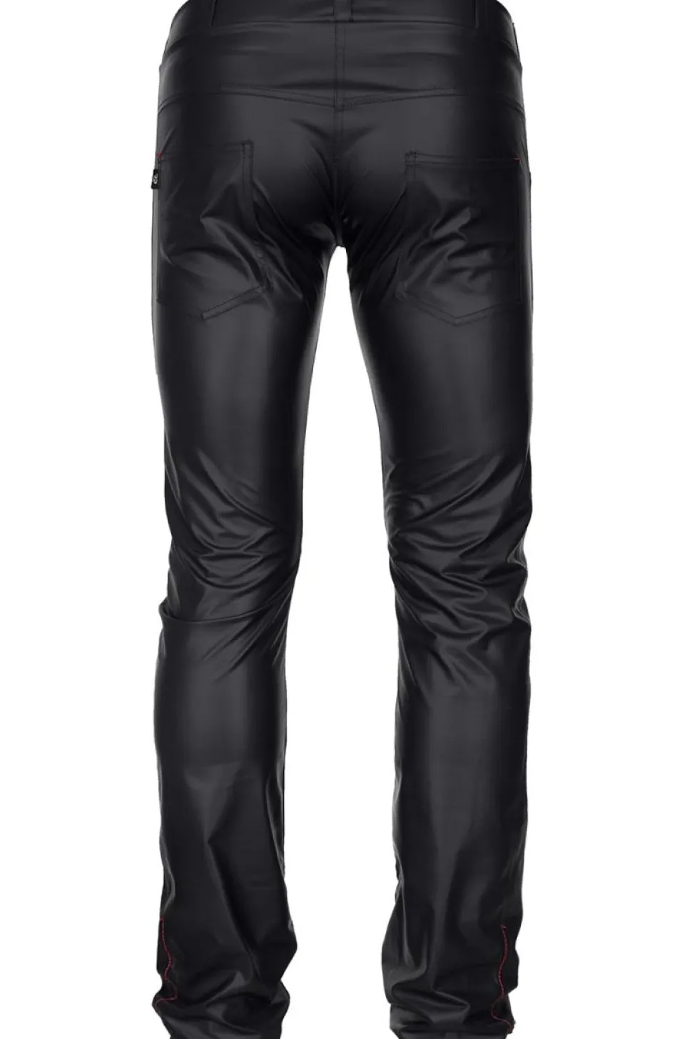 – matter dehnbarer Wetlook Stoff mit roter Naht