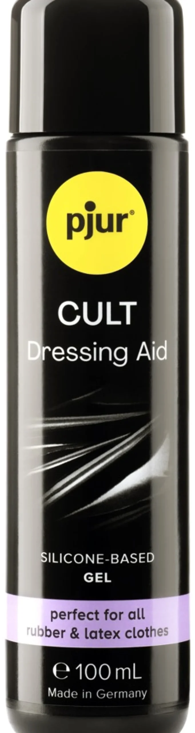 Das silikonbasierte Gel pjur CULT Dressing Aid erleichtert das Anziehen von enganliegender Gummi- und Latexkleidung und sorgt für ein besonders angenehmes Tragegefühl – selbst bei starker Körperbehaarung. Einfach und stressfrei ins enge Outfit: die perfekte Alternative zu Talkumpuder!