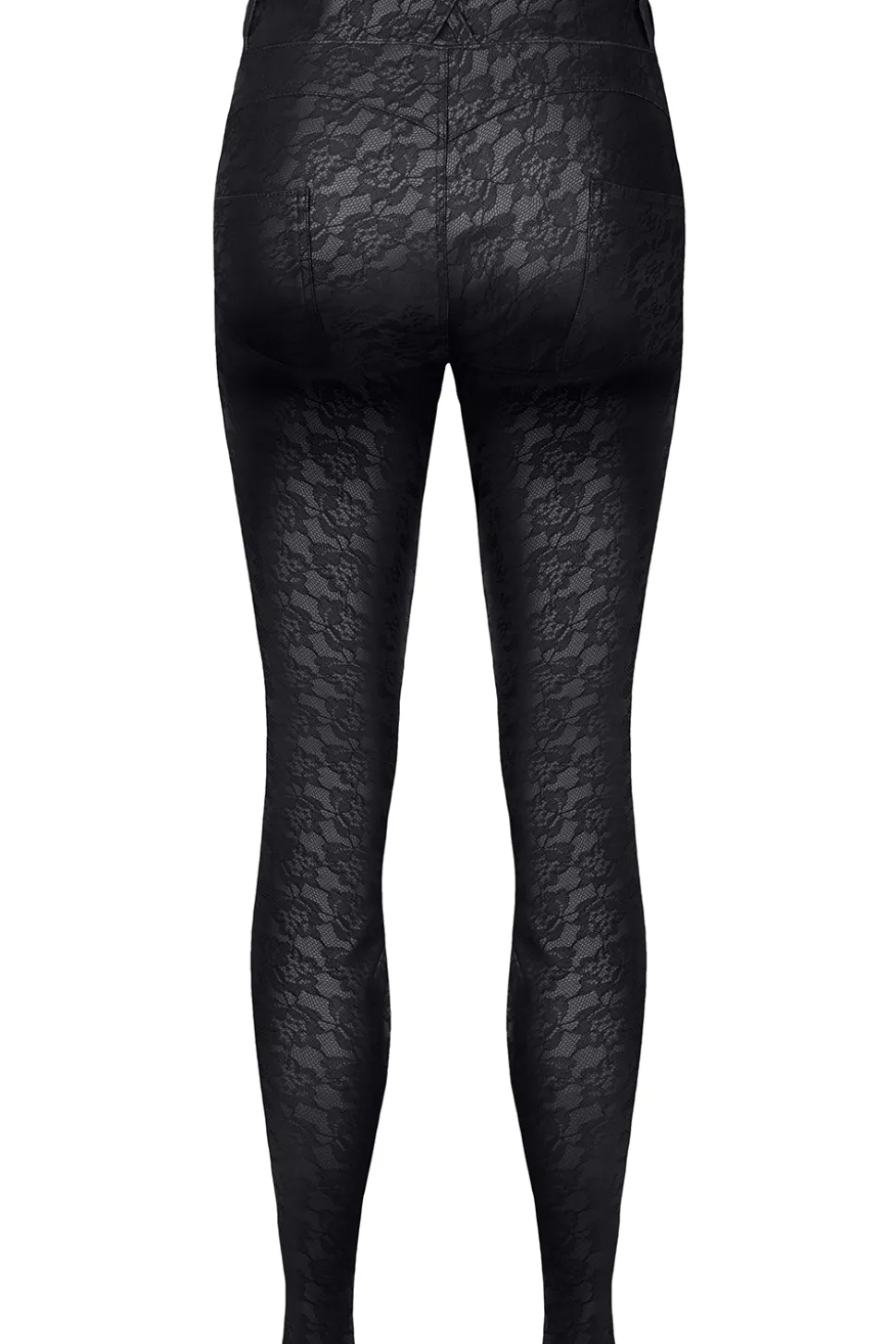 Diese heiße Leggings darf in keinem Schrank fehlen. Das aufwendig verarbeitete, dekorative Muster, verleiht ihr den einzigartigen Look. Das elastische Wetlook Material sitzt super gut und passt sich an. Leggings ist mit Gürtelschlaufen und Gesäßtaschen verziert.
