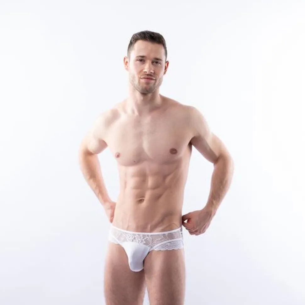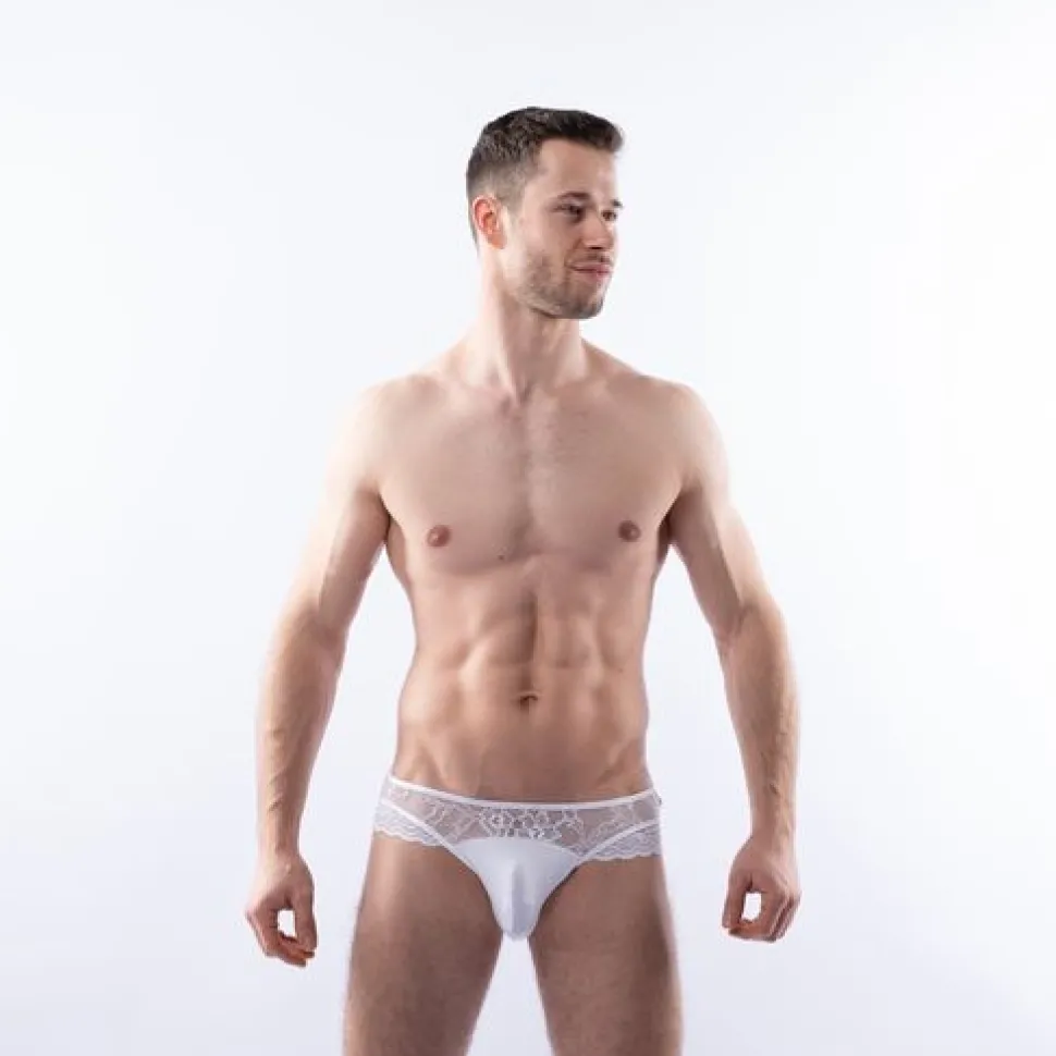 Rundherum aus zarter, weißer Spitze versteckt dieser knappe Brief nur die wichtigsten Stellen zur Gänze. Gebe dich mit Leonardo ganz deiner Leidenschaft & Fantasie hin.