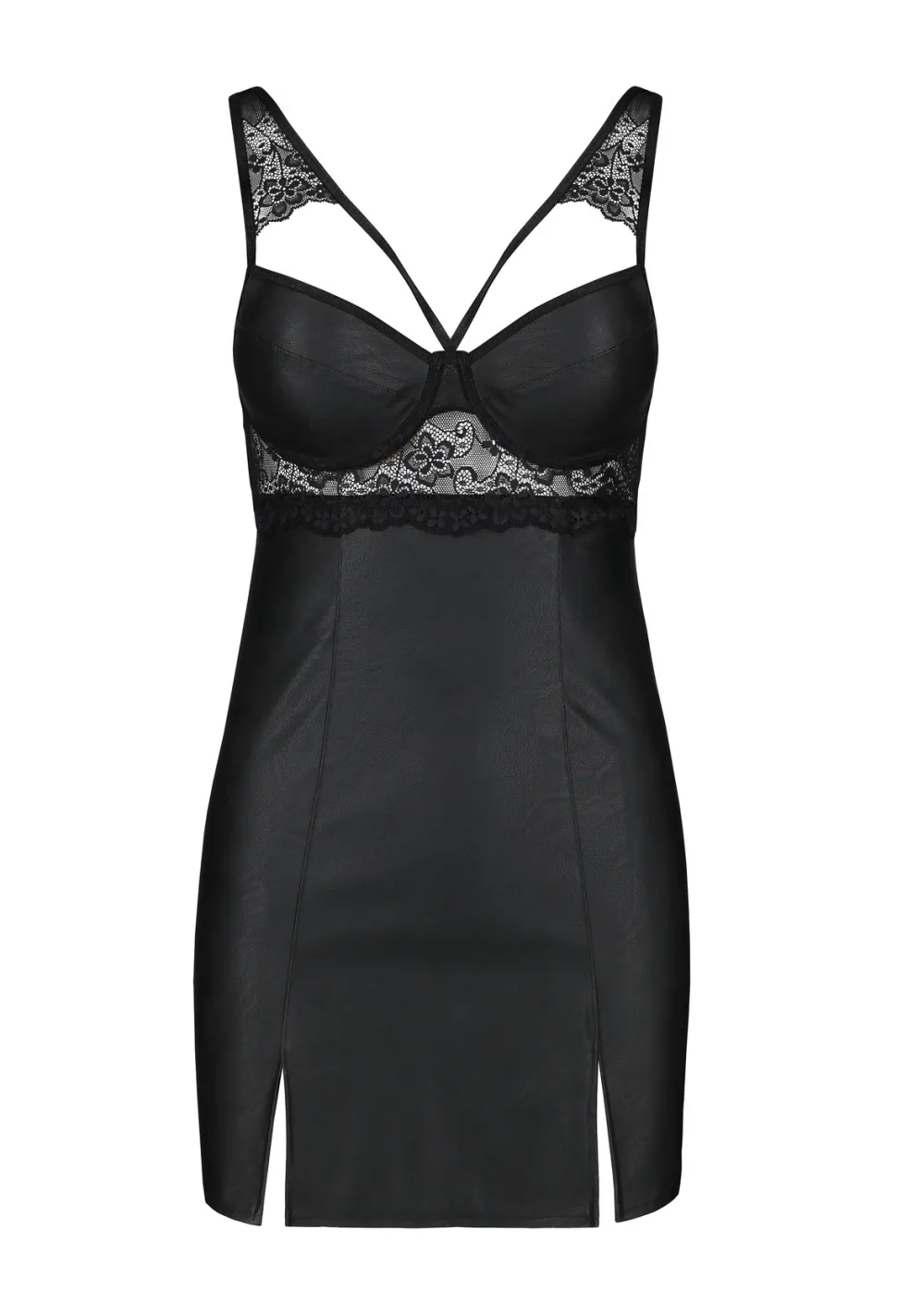 - Verführerisches Hemdchen gefertigt aus lederartigem Material sowie zarter Blütenspitze