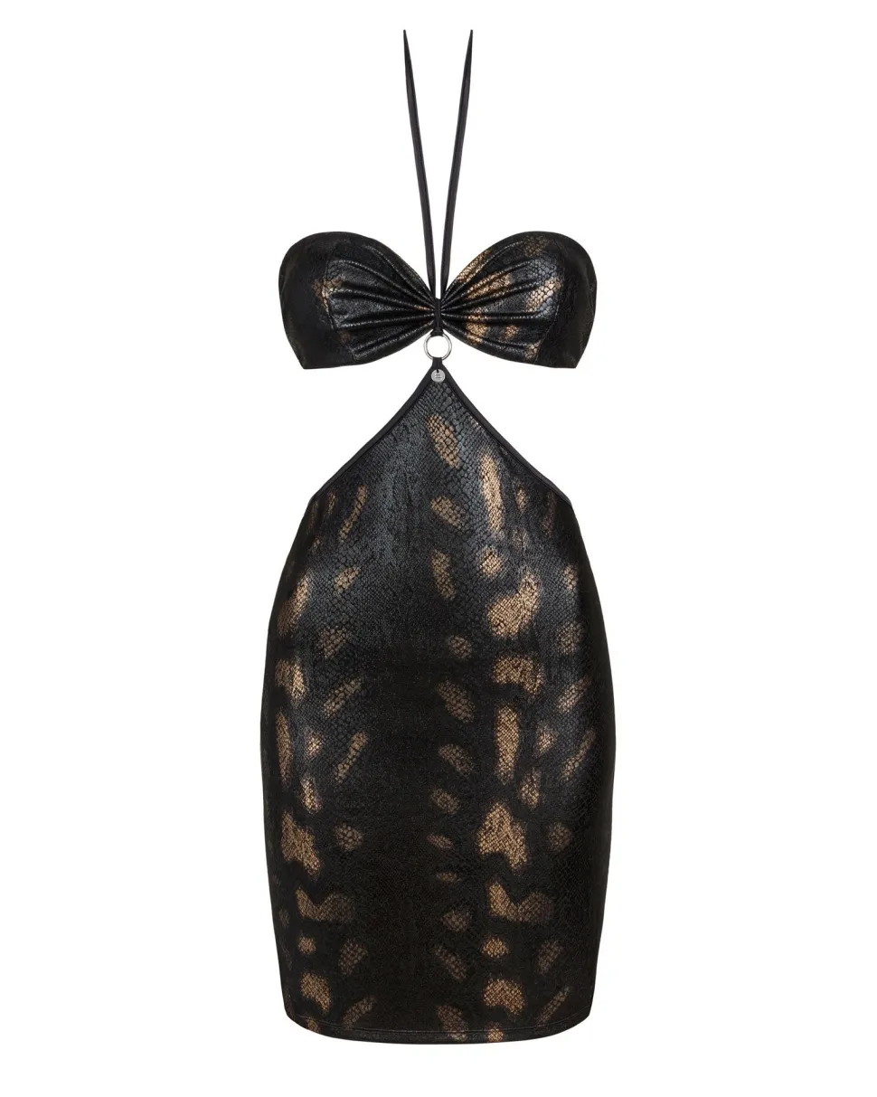 Edles Minikleid aus zartem, weichem Material. Das Kleid wird über den Nacken gebunden. Aus der Rückseite ist es mit einem Hakenverschluss versehen. Hoher Tragekomfort und garantierter Blickfänger!