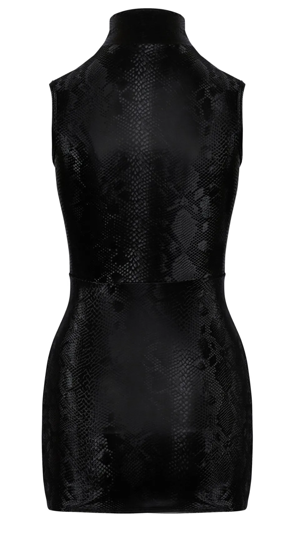 Enges kurzes ärmelloses Kleid von Cottelli PARTY in mattglänzend schillernder Schlangenhaut-Optik. Vorne mit durchgehendem Reißverschluss vom hohen Stehkragen bis zum Saum. Fantastisch elastisch für hautnahen Sitz, Passformsicherheit und hohen Tragekomfort.
