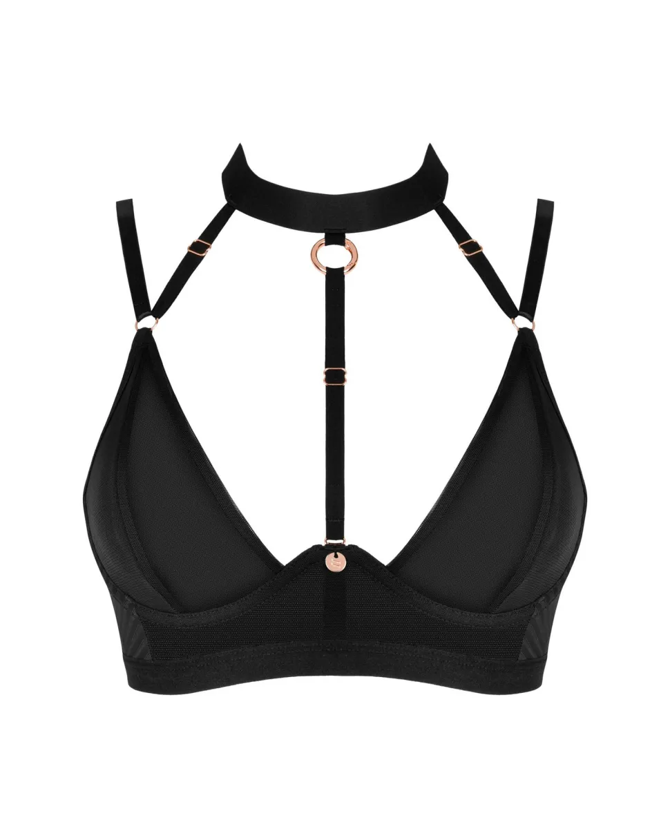 Eleganter Neckholder Soft-BH gefertigt aus zarten Materialien. Die elastischen Riemchen um den Hals sind individuell einstellbar. Mit verstellbaren Trägern, eingearbeiteten Bügeln sowie einem Verschluss auf der Rückseite
