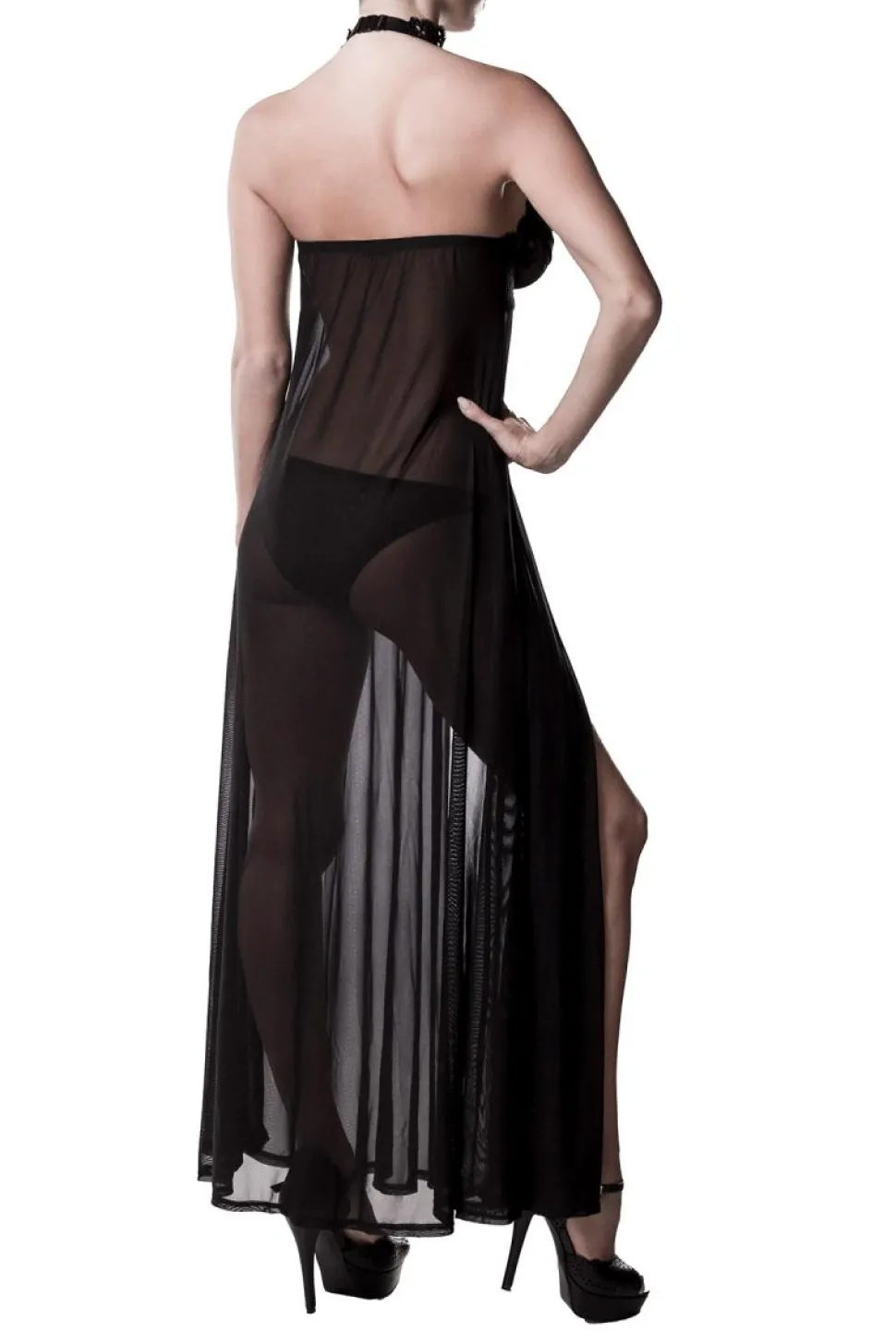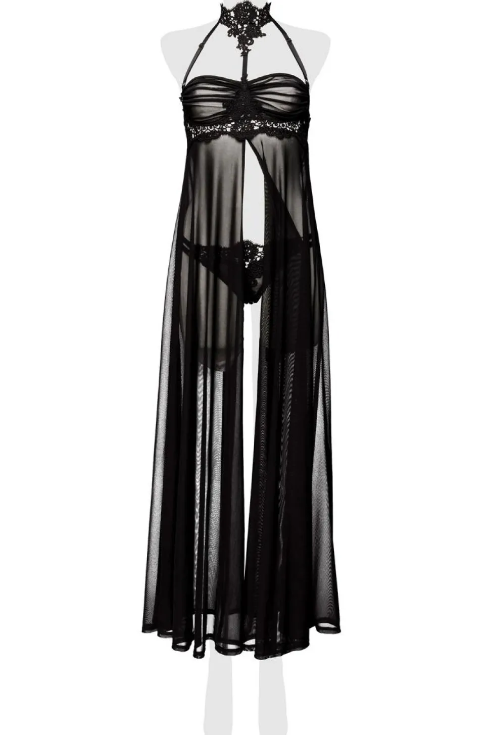 Aufregendes XtraLong Negligé aus feinem Netzmaterial und Häkelspitze mit floralem Muster. Ein Must Have unter den Liebhabern! Der passende String ist mit dabei.