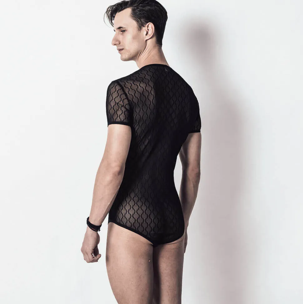 Spüre die angenehme Spitze auf deiner Haut. Nuoro neo ist ein Body im maskulinen Schnitt gefertigt aus hochwertiger schwarzer Dresdner Spitze. Mit praktischen Knopfverschluss am unteren Ende.