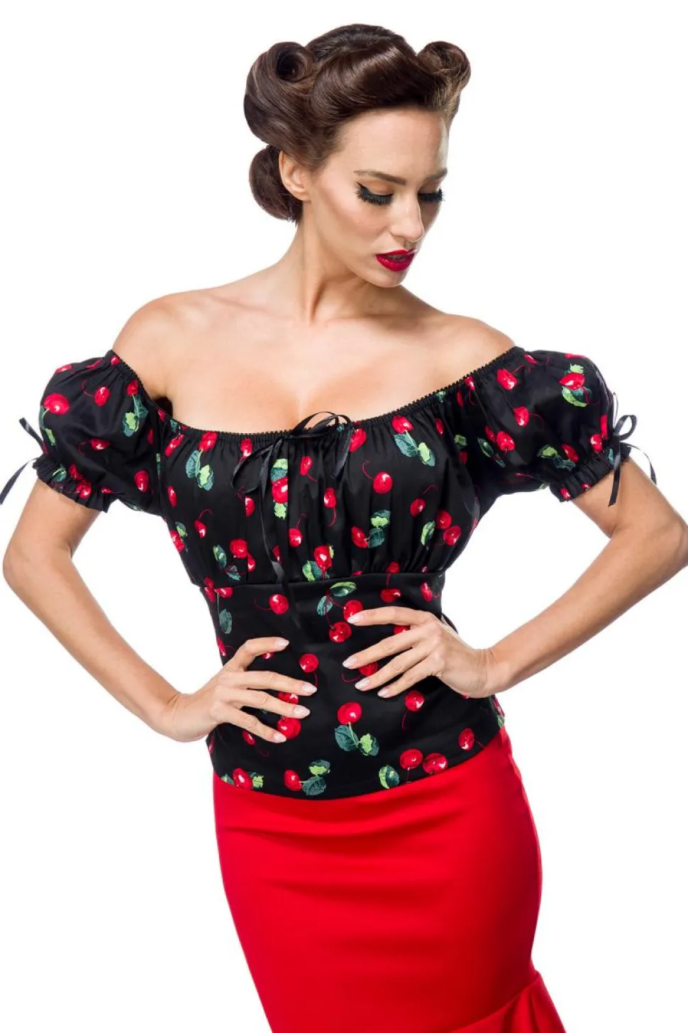 Schönes schulterfreies Oberteil mit Raffungen im Brustbereich. Mit kurzen Ärmelchen und aufgesetzte Zierschleifen. Mit Gummizug im Schulter-und Armbereich für optimalen Sitz. Nahtfeiner Reißverschluss in der Seitennaht.