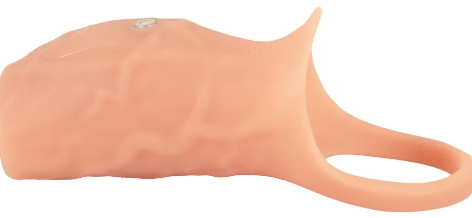Aus seidig softem Silikon mit feiner Äderung gefertigt, sieht die Penismanschette sehr realistisch aus und fühlt sich auch so lebensecht streichelweich an. Rundum elastisch schmiegt sie sich jedem Penis hautnah an. Dank der Materialstärke und der federleichten, flachen Vibrationseinheit wird der Penis im Umfang spürbar vergrößert. 10 Vibrationsmodi sind einfach per Knopfdruck direkt an der Hülle bequem steuerbar.