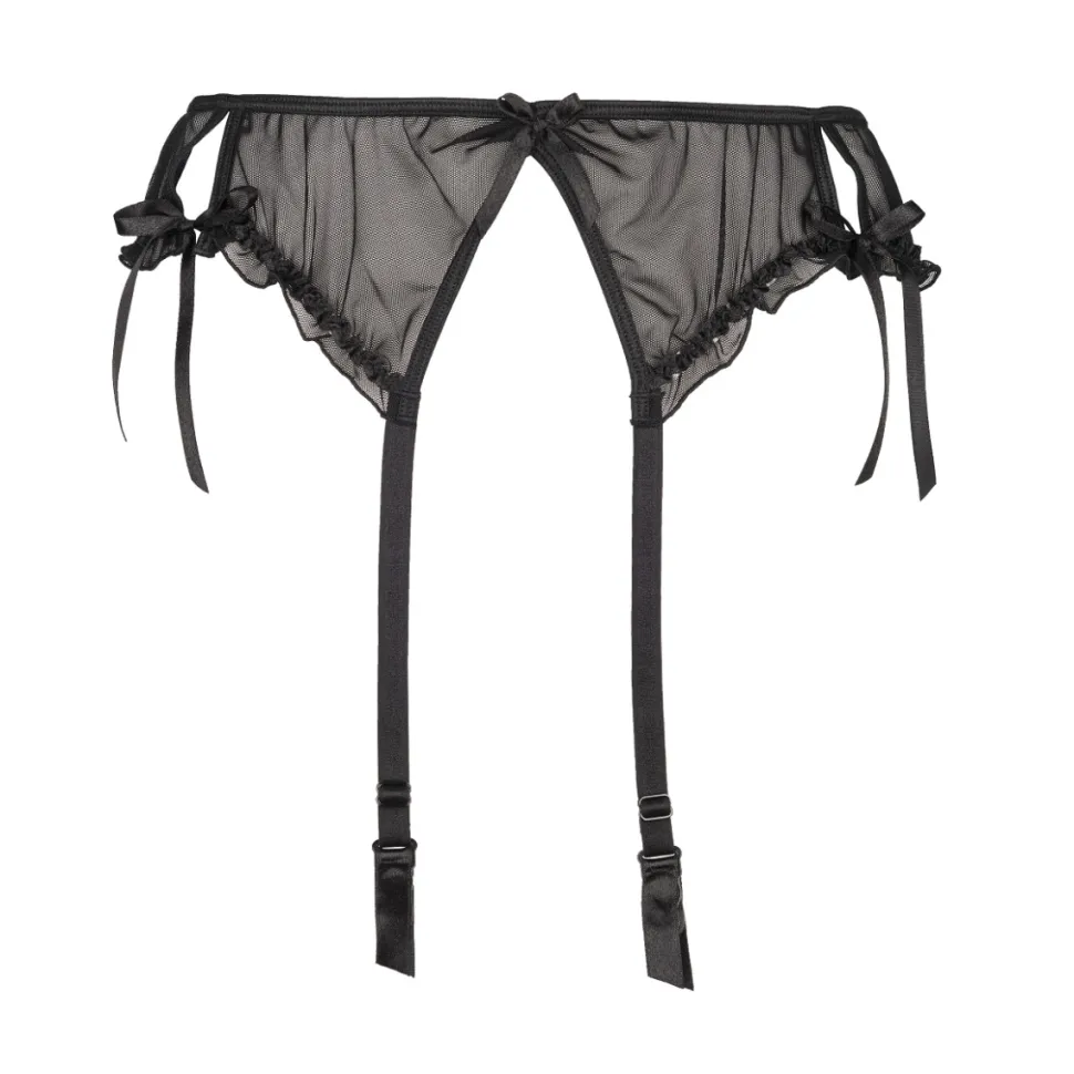 Sexy Strapsgürtel gefertigt aus feinstem Tüll. Das elastische Material liegt angenehm auf der Haut. Auf der Rückseite mit einem 3-fach verstellbaren Hakenverschluss versehen. Die vier festgenähten Strapshalter sind verstellbar.