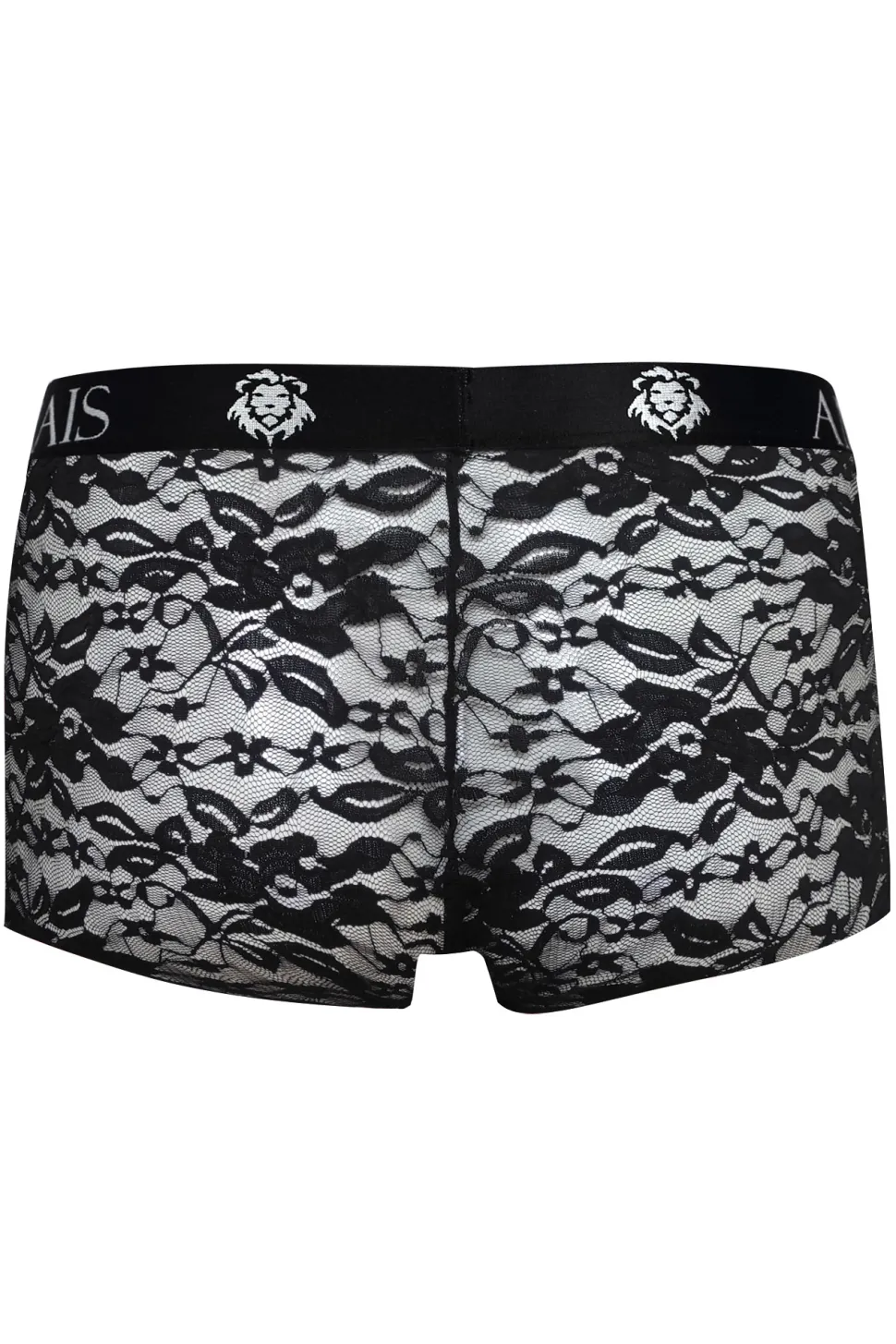 Herren Boxer Shorts, gefertigt aus transparenter, dehnbarer Spitze und breitem Gummibund.