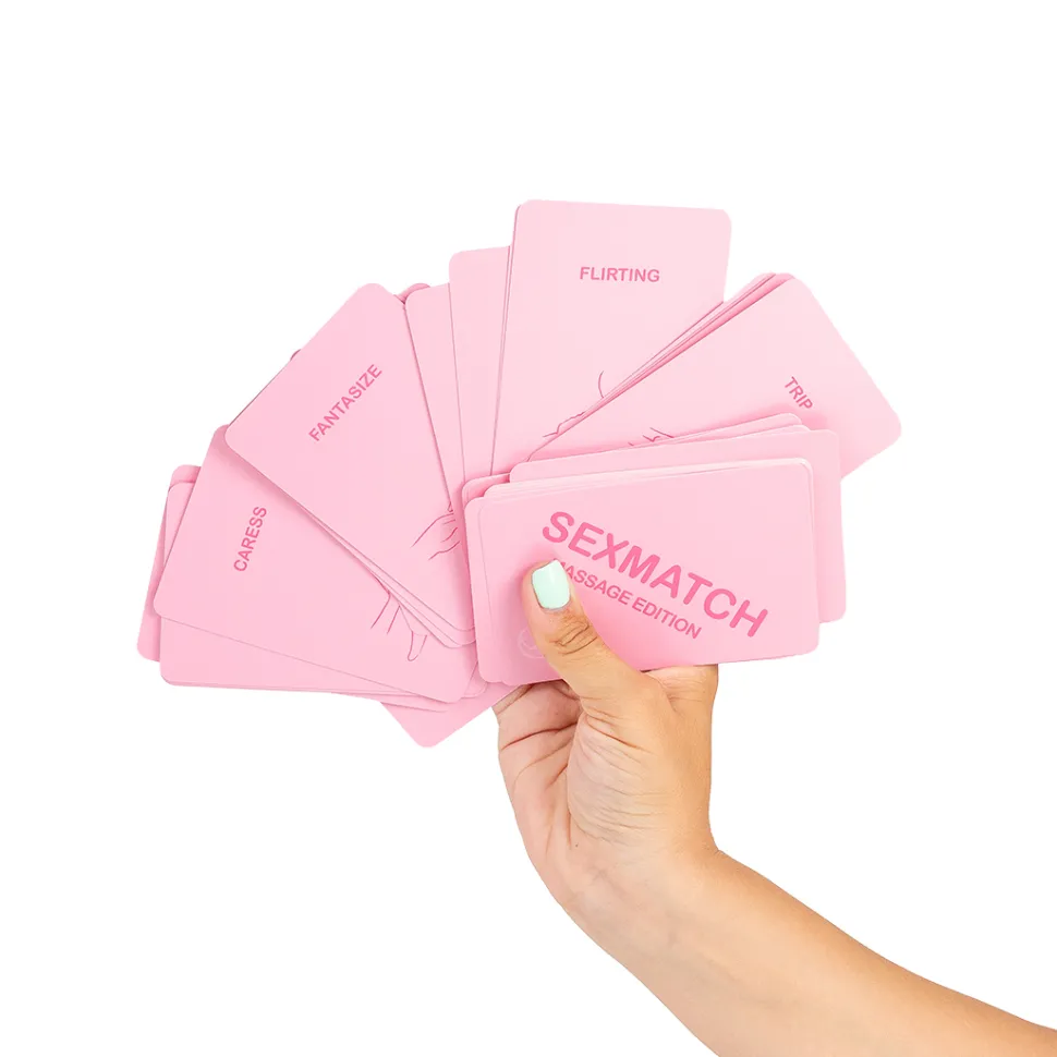 Sexmatch Massage Edition ist ein Kartenspiel für Paare, bei dem Sie Bilder und Wörter zusammenbringen müssen, während Sie Herausforderungen meistern, bis einem von Ihnen die Karten ausgehen. Genießen Sie gemeinsam dieses Spiel, bei dem Sie sexy Belohnungen für ein Sexmatch erhalten!