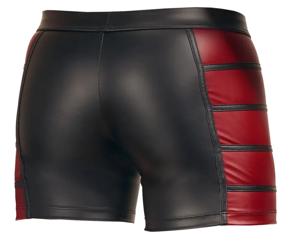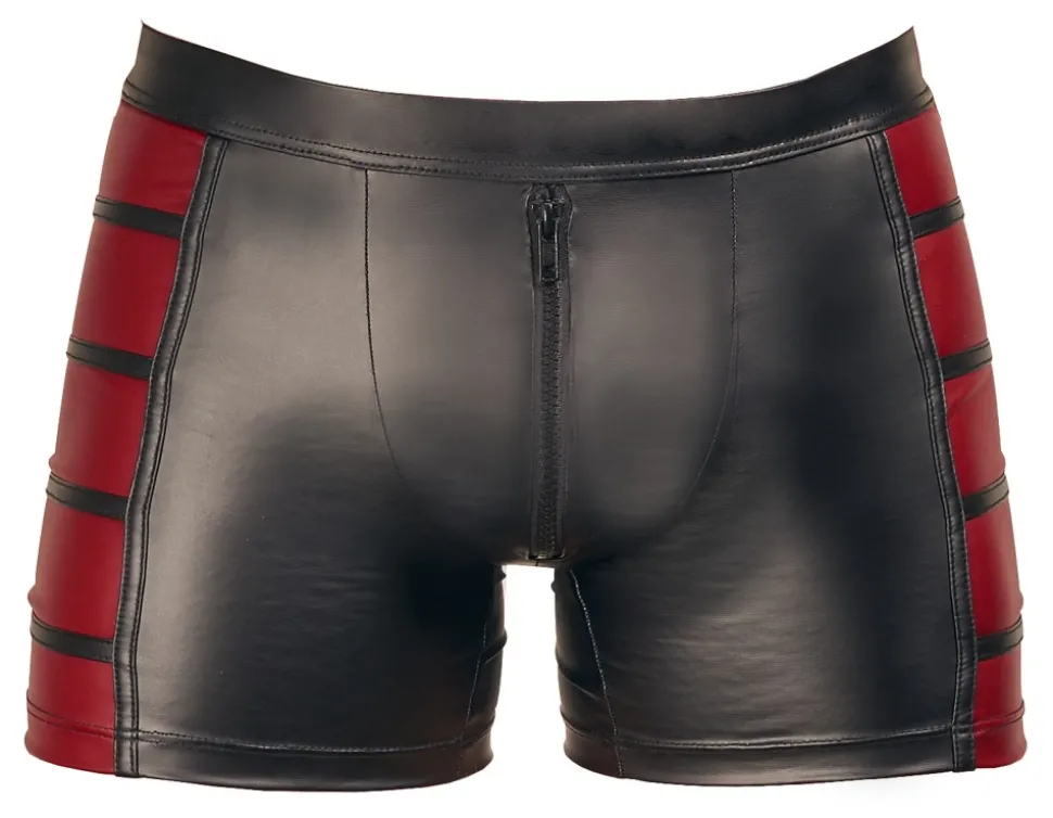 Schwarze Pants von NEK im trendigen Mattlook mit roten Einsätzen jeweils seitlich. Vorne mit unterlegtem Reißverschluss, der sich für praktische und erotische Zwecke schnell öffnen lässt. Fantastisch elastisch für hervorragenden Tragekomfort.