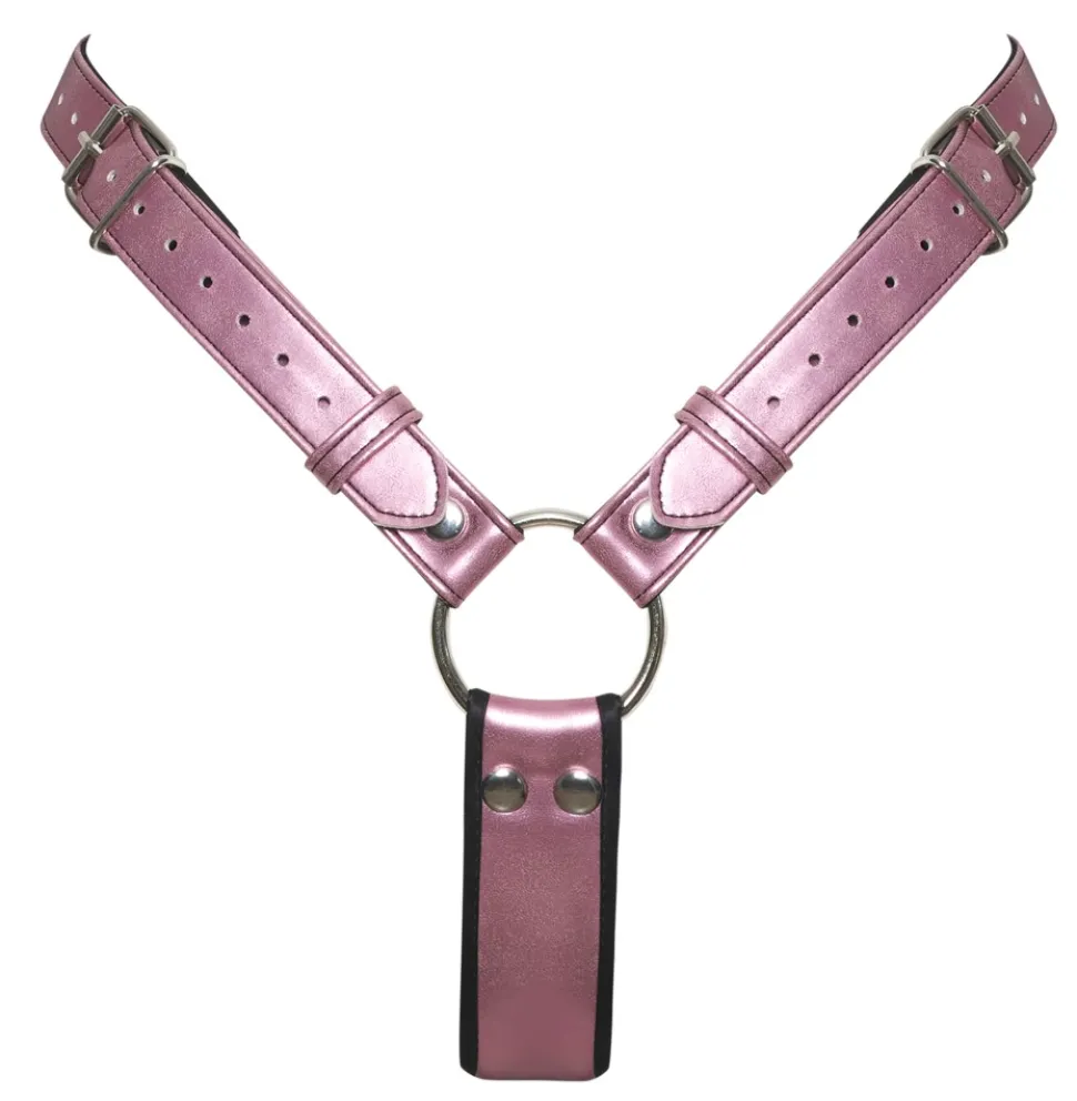 Strap-on-String von Bad Kitty mit fest integriertem, schwarzem Naturdildo aus Silikon. Umschnallstring in schillernder Rosé-Metallic-Optik mit silberfarbenen Metalldetails. Innen in Kontrastfarbe Schwarz mit samtigem Textil weich gefüttert. Jeweils seitlich mit Schnallenverschluss verstellbar für festen Sitz und komfortable Passform.