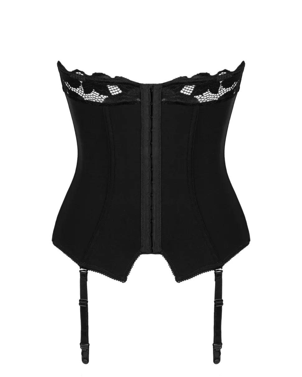 Bezaubernde Strapscorsage aus zartem Material, mit Muster. Hoher Tragekomfort. Auf der Rückseite mit Hakenverschluss versehen (durchgehend). ACHTUNG: ohne Strümpfe und Panty!