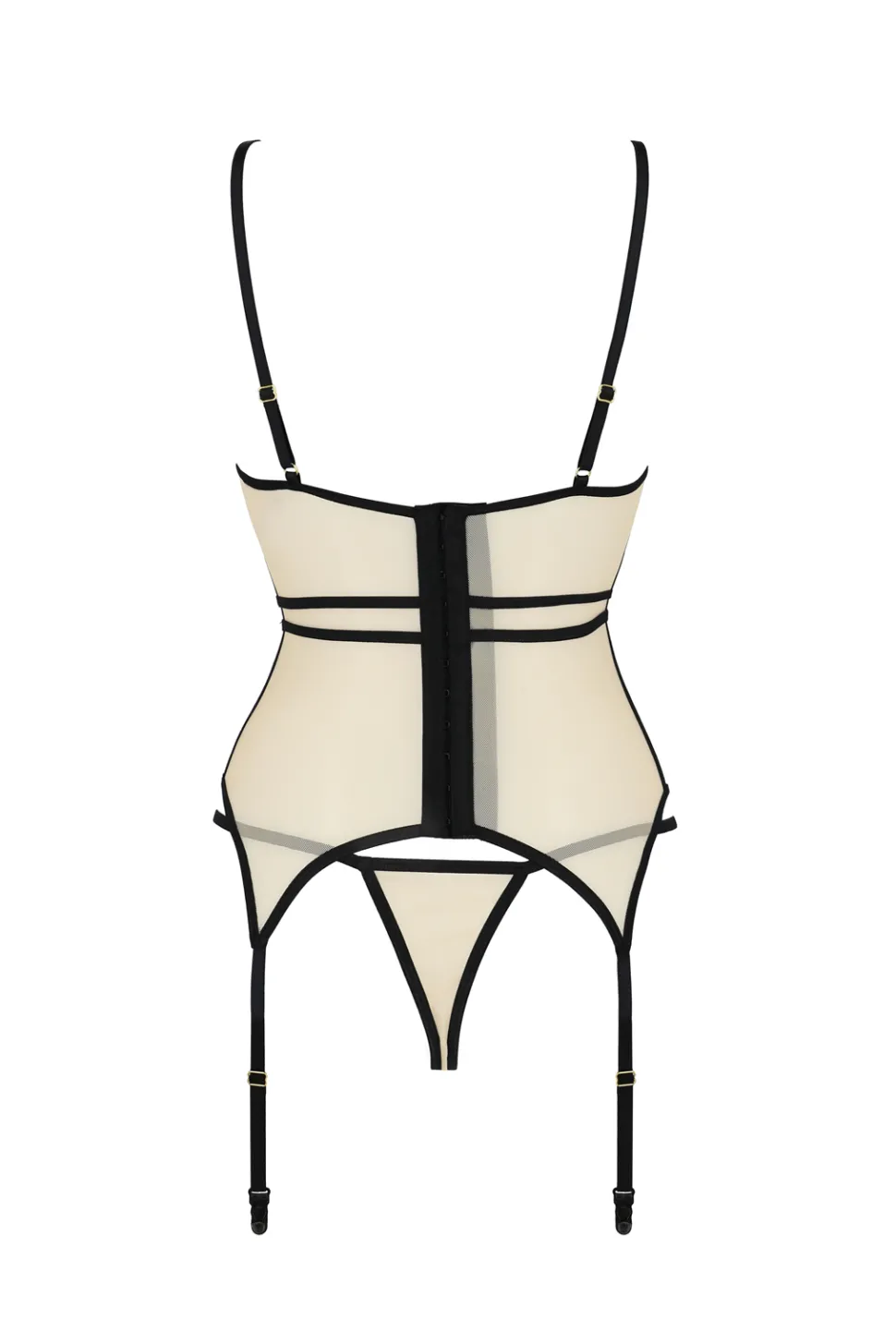 Dieses wahnsinnig sexy Dessous-Set wird dich blendend aussehen lassen. Das Oberteil ist mit Formbügeln ausgestattet und setzt Deine Brüste in perfekte Form. Die Träger und Strumpfhalter sind verstellbar. Ein passender T-String gehört mit zur Lieferung. Die abgebildeten Strümpfe gehören nicht zum Lieferumfang.