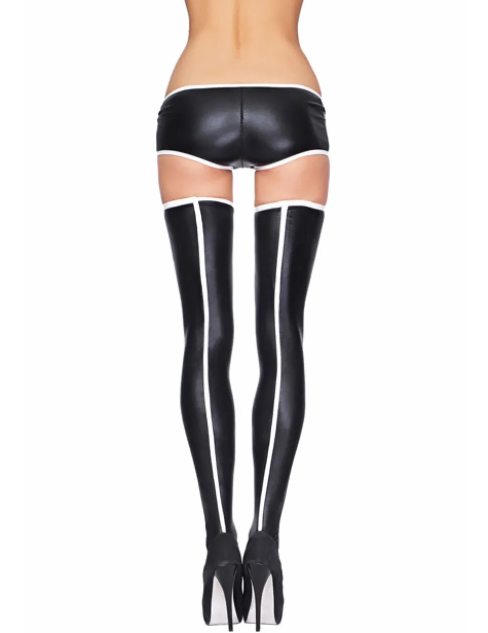 – Schwarz/weiße Straps-Strümpfe
