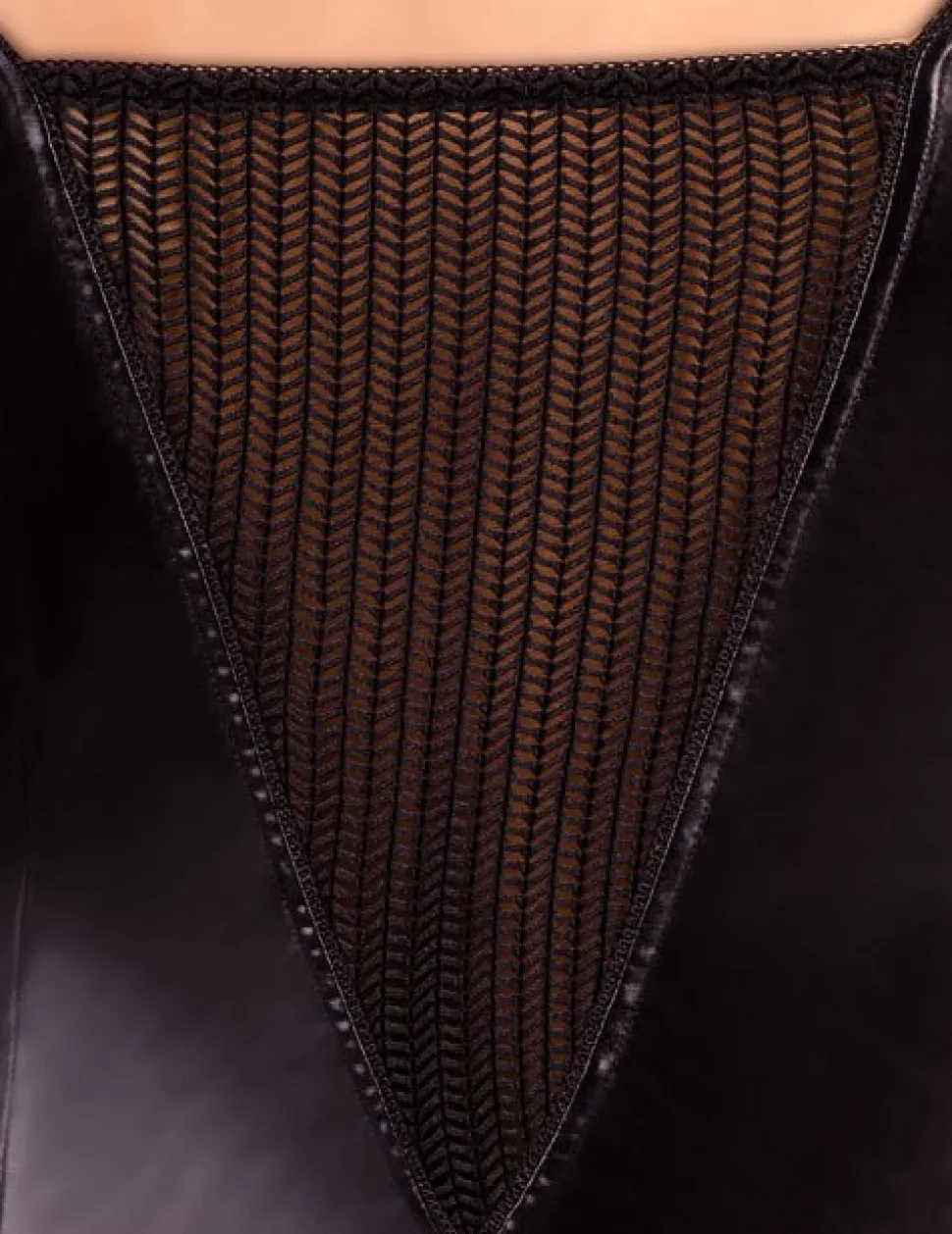 Provokant und extrem sexy! Diese Straps-Chemise aus federleichtem, sinnlichem Wetlook-Material können Sie besonders vielseitig kombinieren. Sie kann sowohl als atemberaubendes Negligé, wie auch als glanzvolles Party- und Clubkleid getragen werden. Das Design umschmeichelt Ihre Kurven und huldigt Ihrer Weiblichkeit. Sowohl die Träger wie auch die Strapshalter sind stufenlos verstellbar. Keilförmige Seiten-Einsätze mit Perforierungen verbinden eine interessante Optik mit hervorragendem Sitz. In unserem Shop finden Sie eine große Auswahl an passenden Strümpfen.