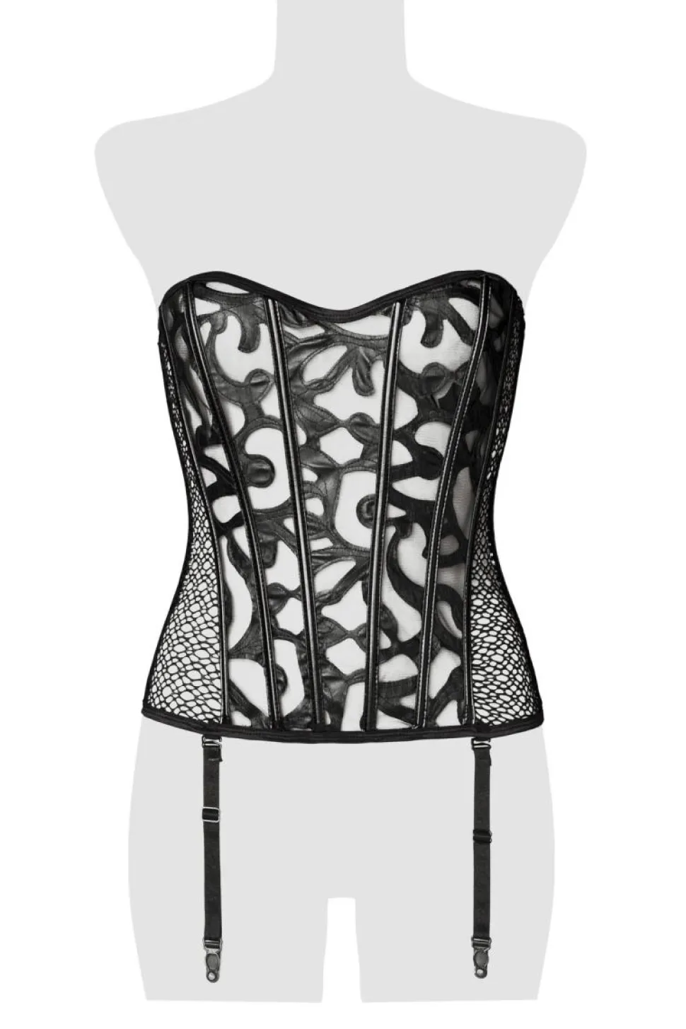 Strapscorsage mit applizierten Elementen und floralen Formen. Mit formenden Stäbchen und Schnüren im Rückteil.