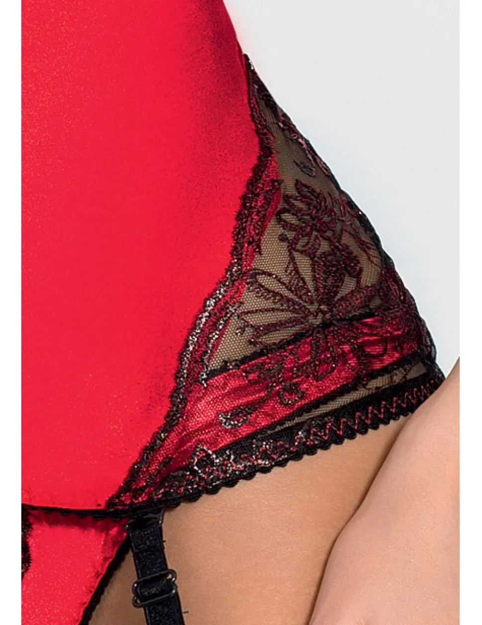– Rotes Corset aus dehnbarem Material und Spitze
