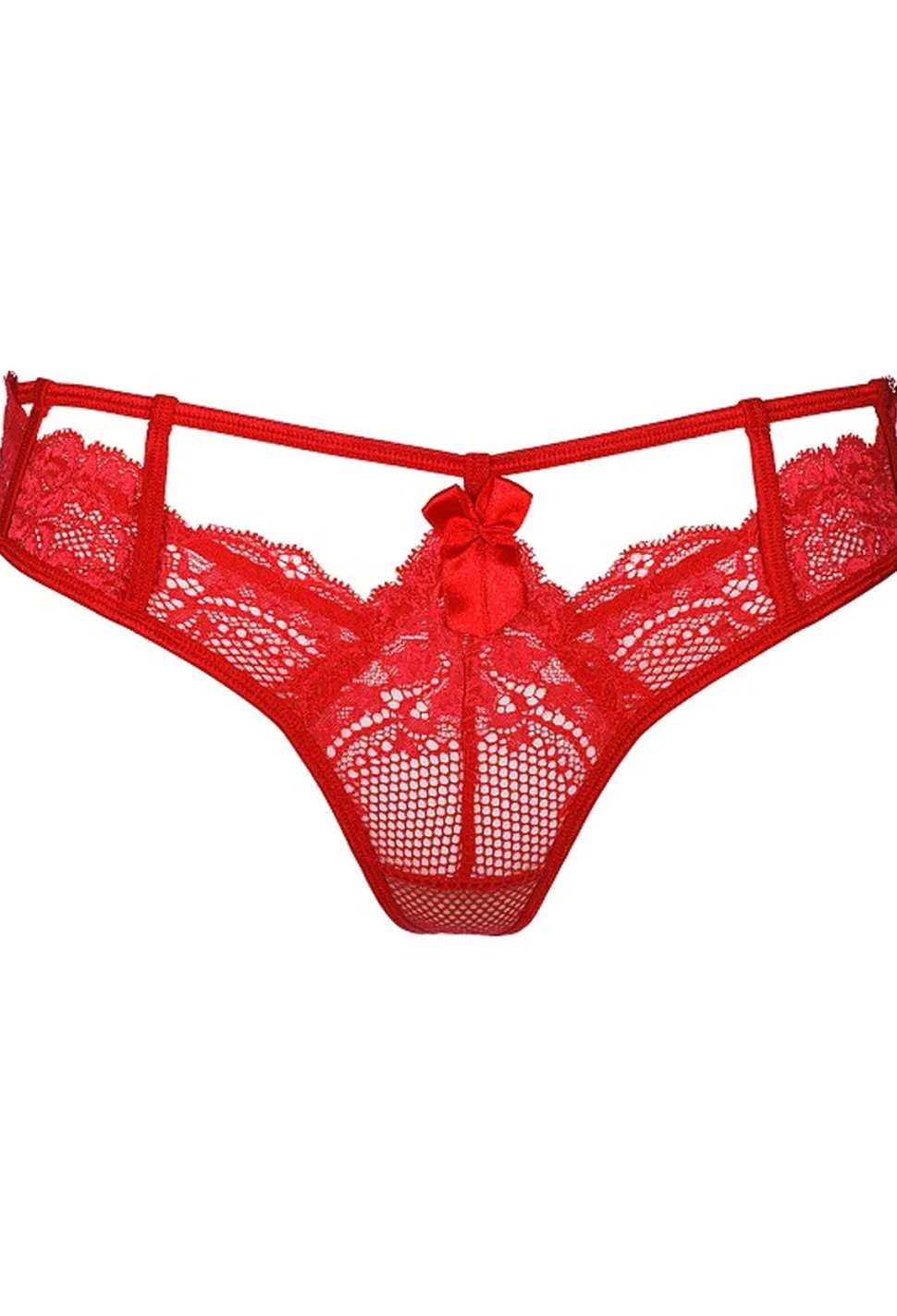 Dieser atemberaubende, rote String ist mit zusätzlichen elastischen Bändchen und Spitze versehen, was für einen sexy Look sorgt. Auf der Vorderseite ist mittig ein dekoratives Schleifchen platziert. bei diesem String wird niemand den Blick von Dir lassen können!