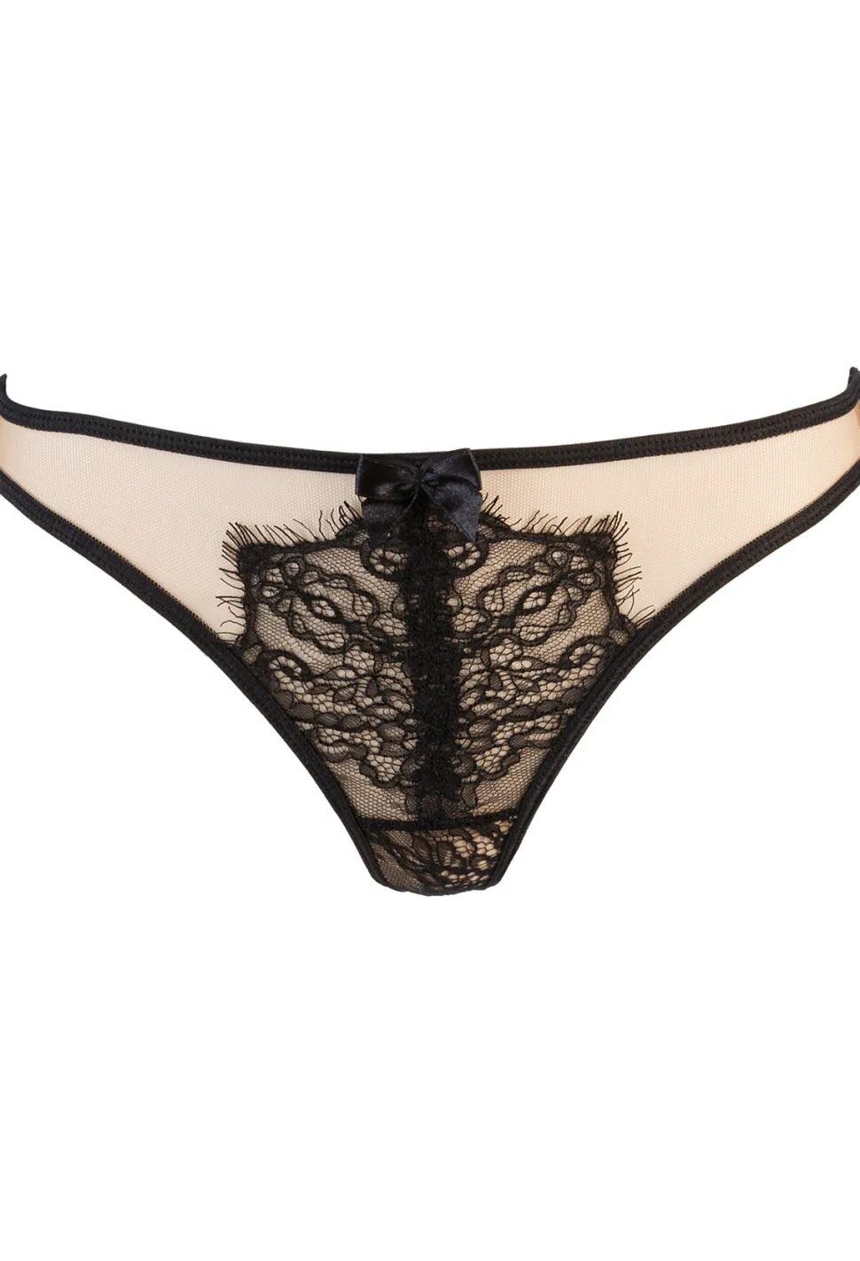 Dieser edle Riemchenstring lässt sich gut mit deinen BHs kombinieren. Er ist aus einem Mix aus beigem Tüll und schwarzer Spitze gefertigt. Auf der Vorderseite ist der String mit einem dekorativen Schleichen versehen. Auf der Rückseite besticht er mit fünf, einzelnen Riemchen, supersexy!